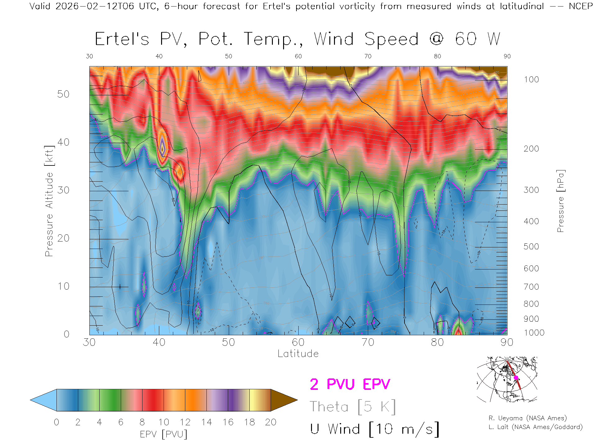 NCEP GFS Forecast PV X-Section (60 W)