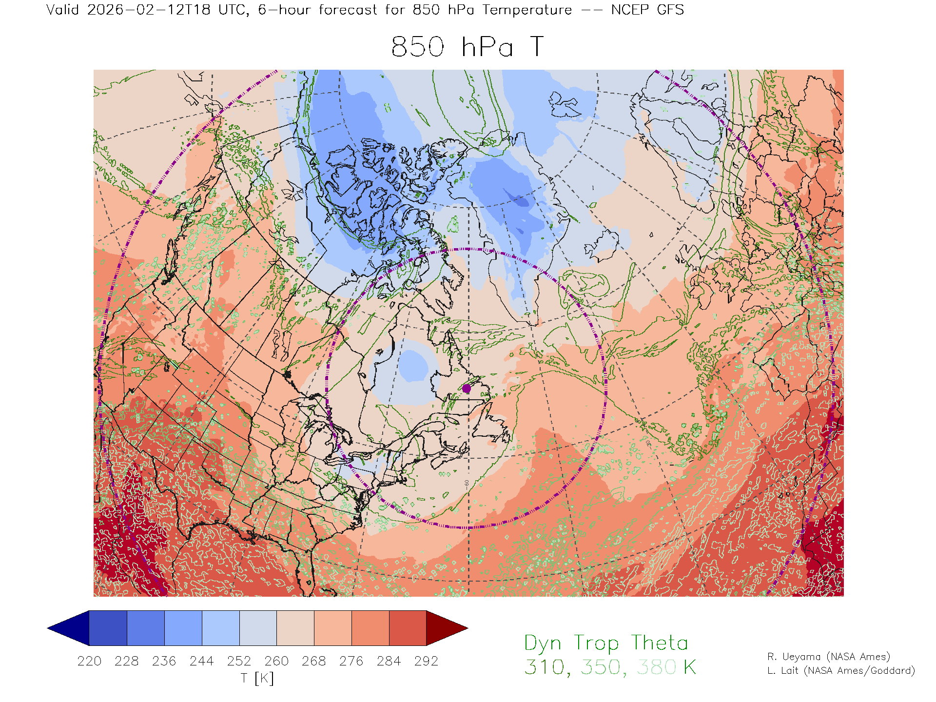 NCEP GFS Forecast 850 hPa Temp.