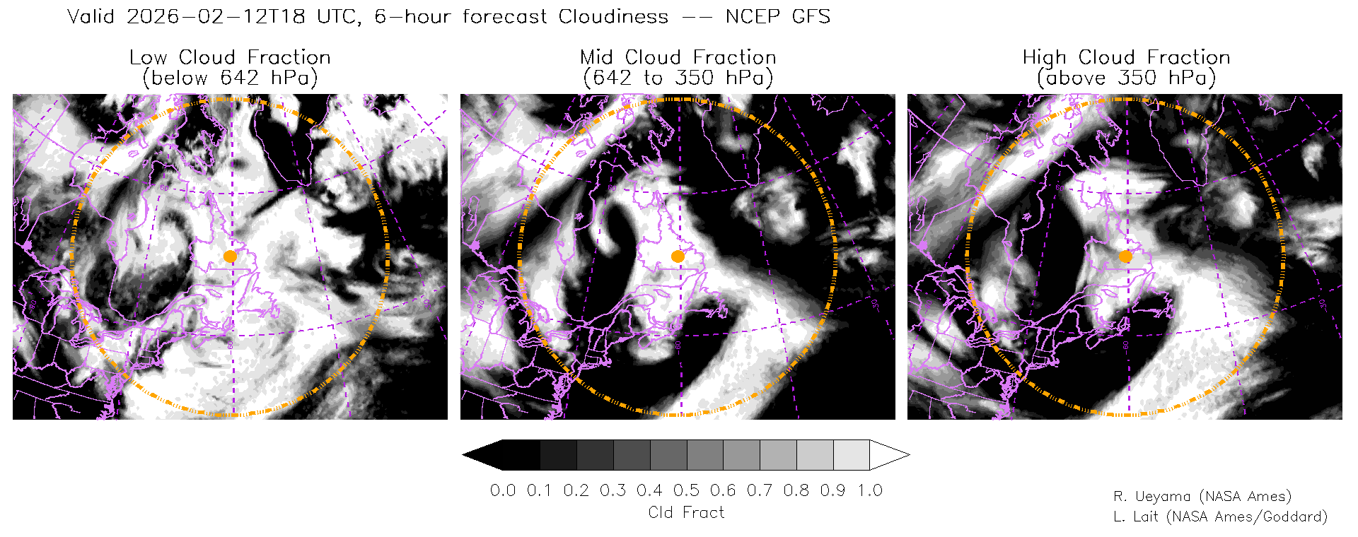 NCEP GFS Forecast Cloud Fraction (High, Mid, Low)