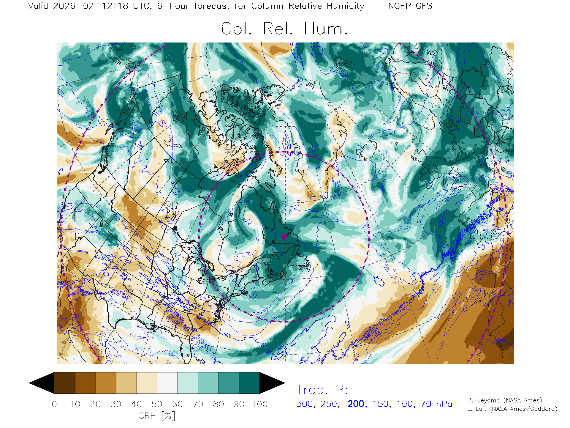 NCEP GFS Forecast Column Rel. Humidity