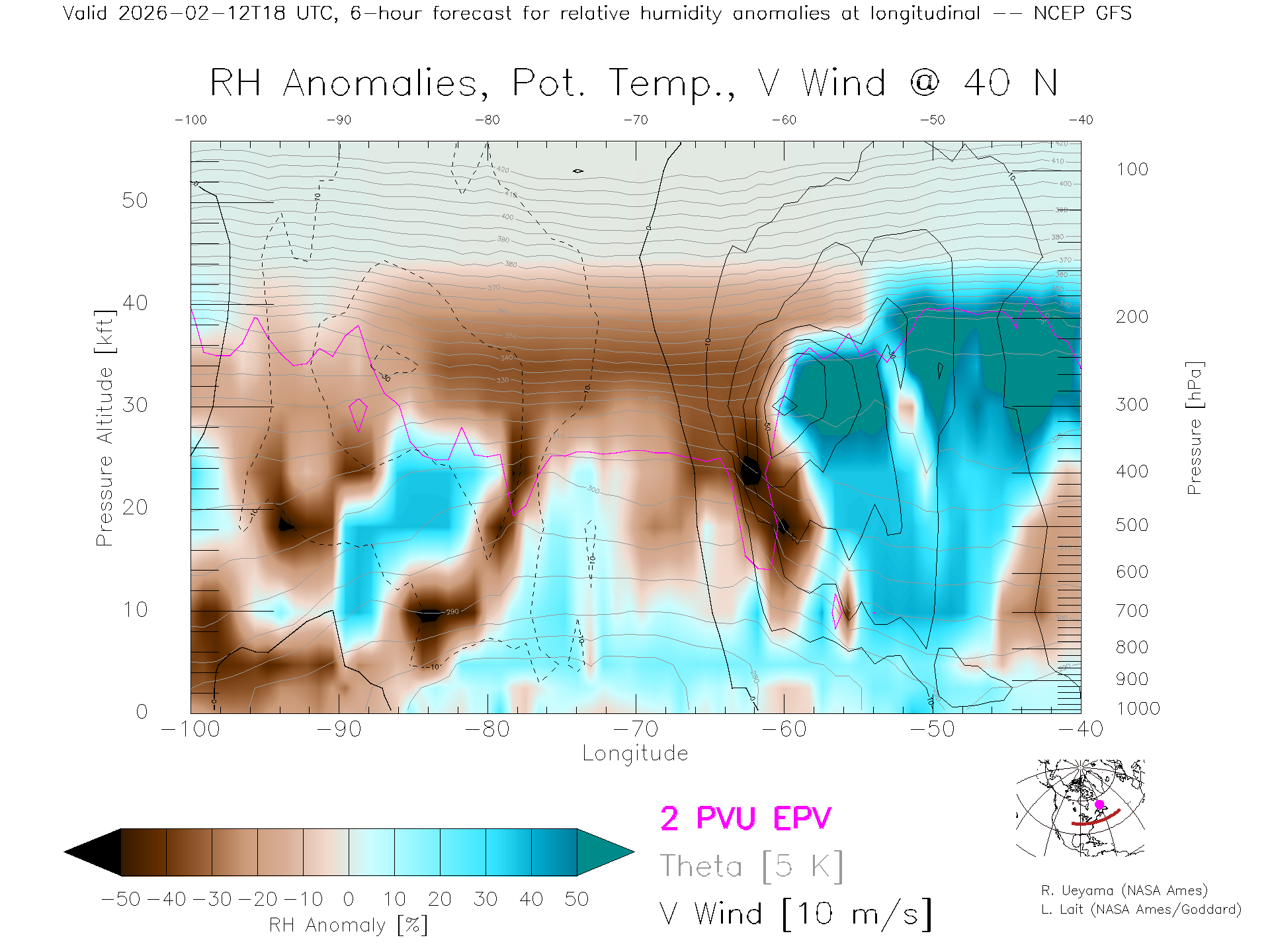 NCEP GFS Forecast Rel. Hum. X-Section (40 N)