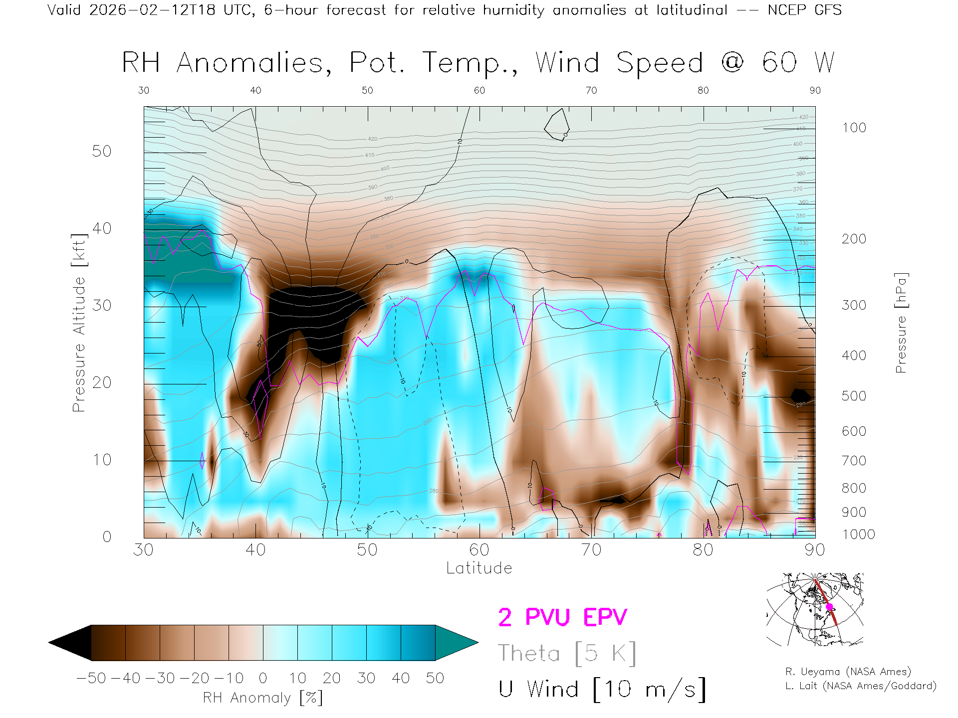 NCEP GFS Forecast Rel. Hum. X-Section (60 W)