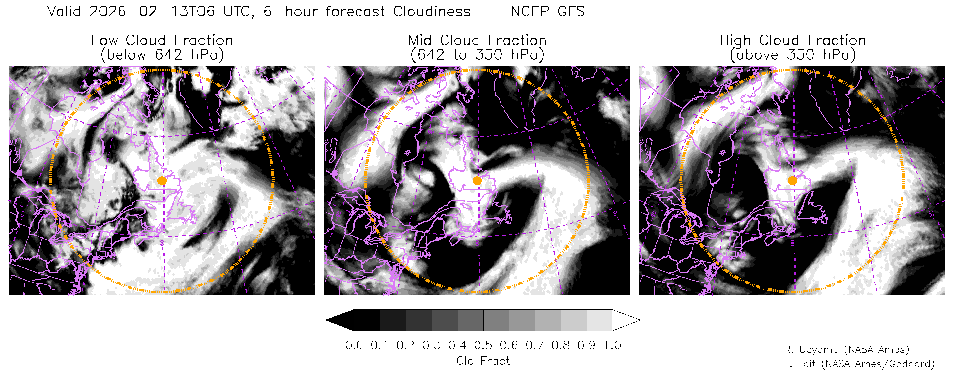 NCEP GFS Forecast Cloud Fraction (High, Mid, Low)