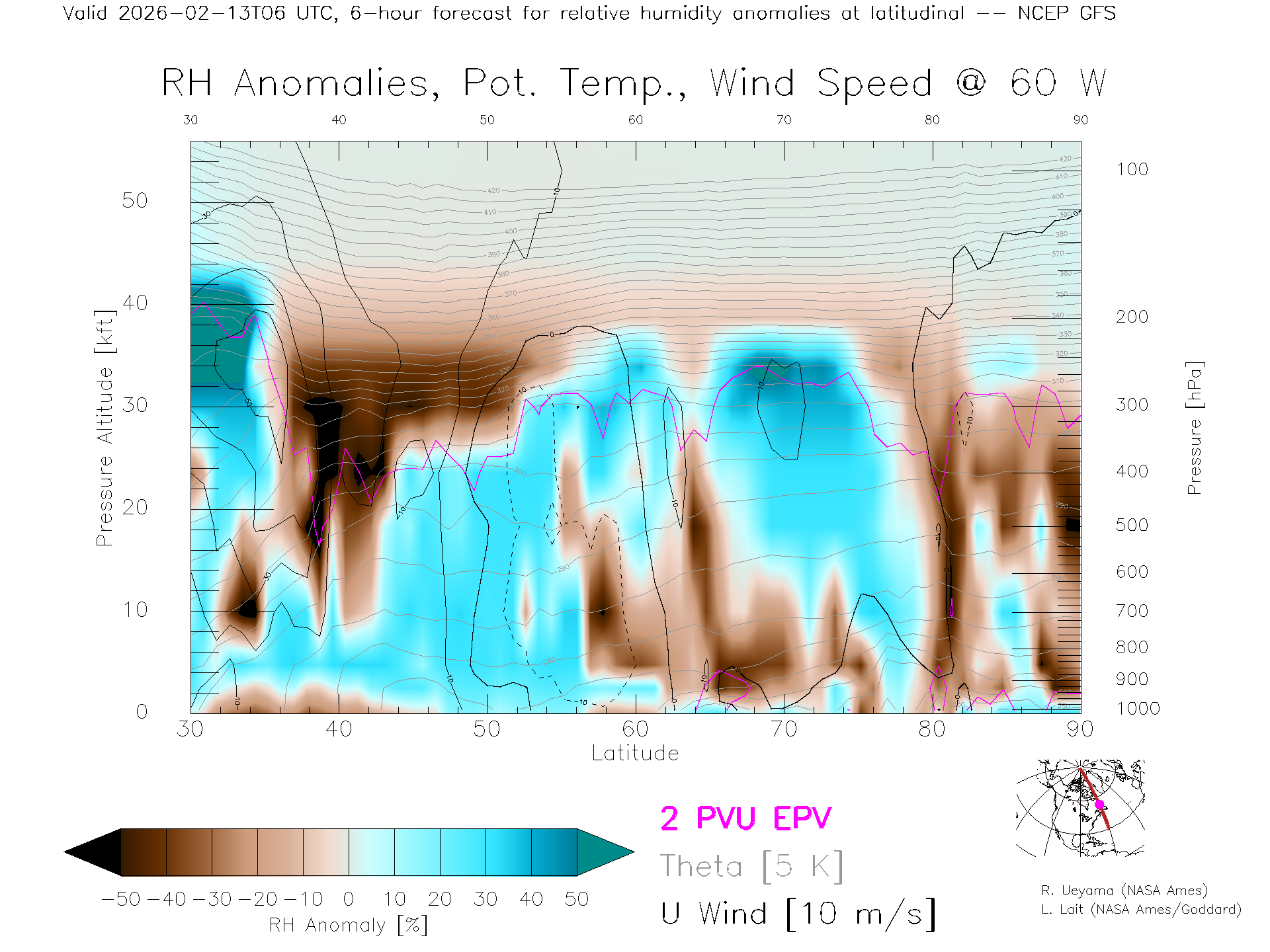 NCEP GFS Forecast Rel. Hum. X-Section (60 W)