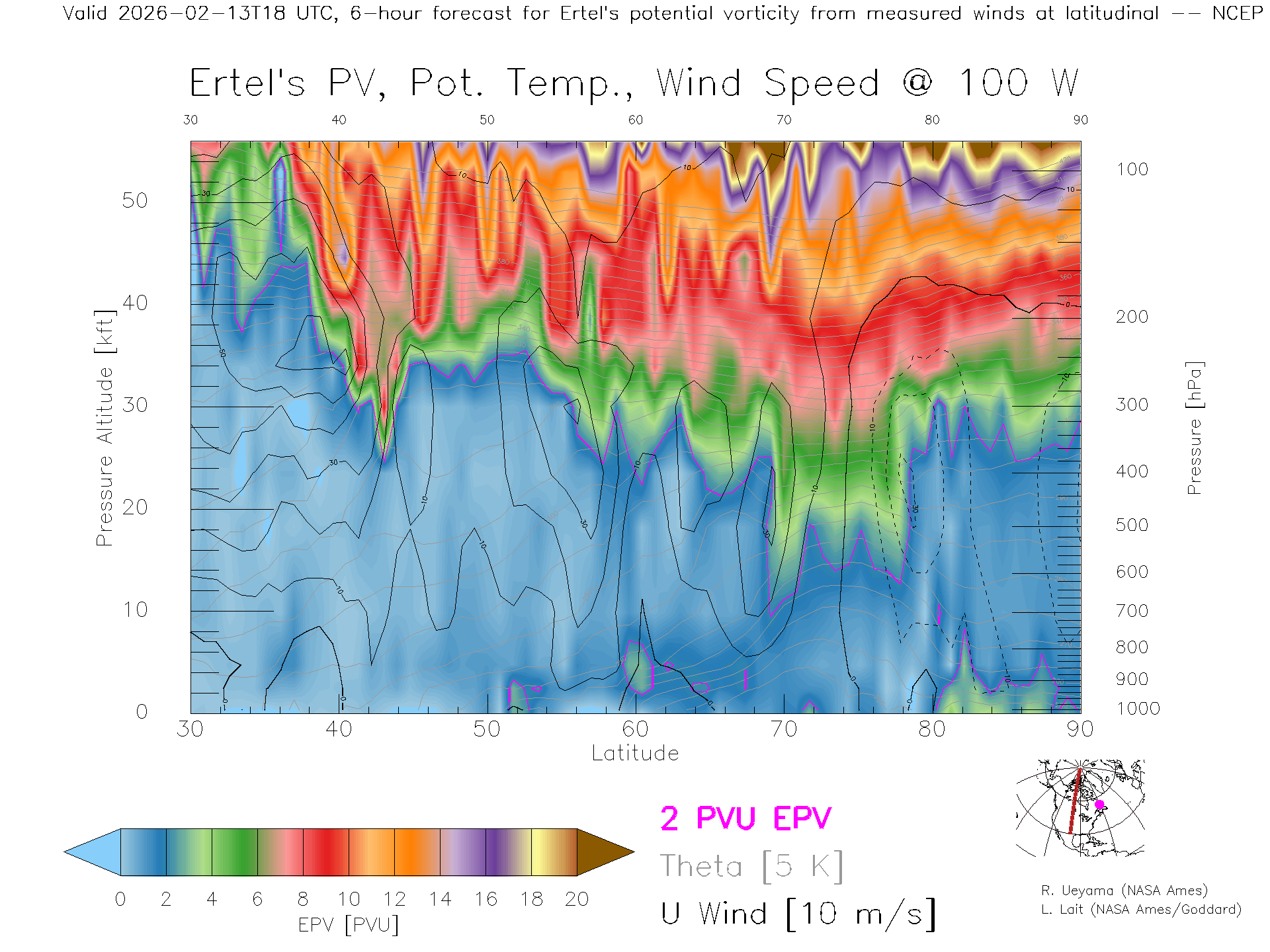 NCEP GFS Forecast PV X-Section (100 W)
