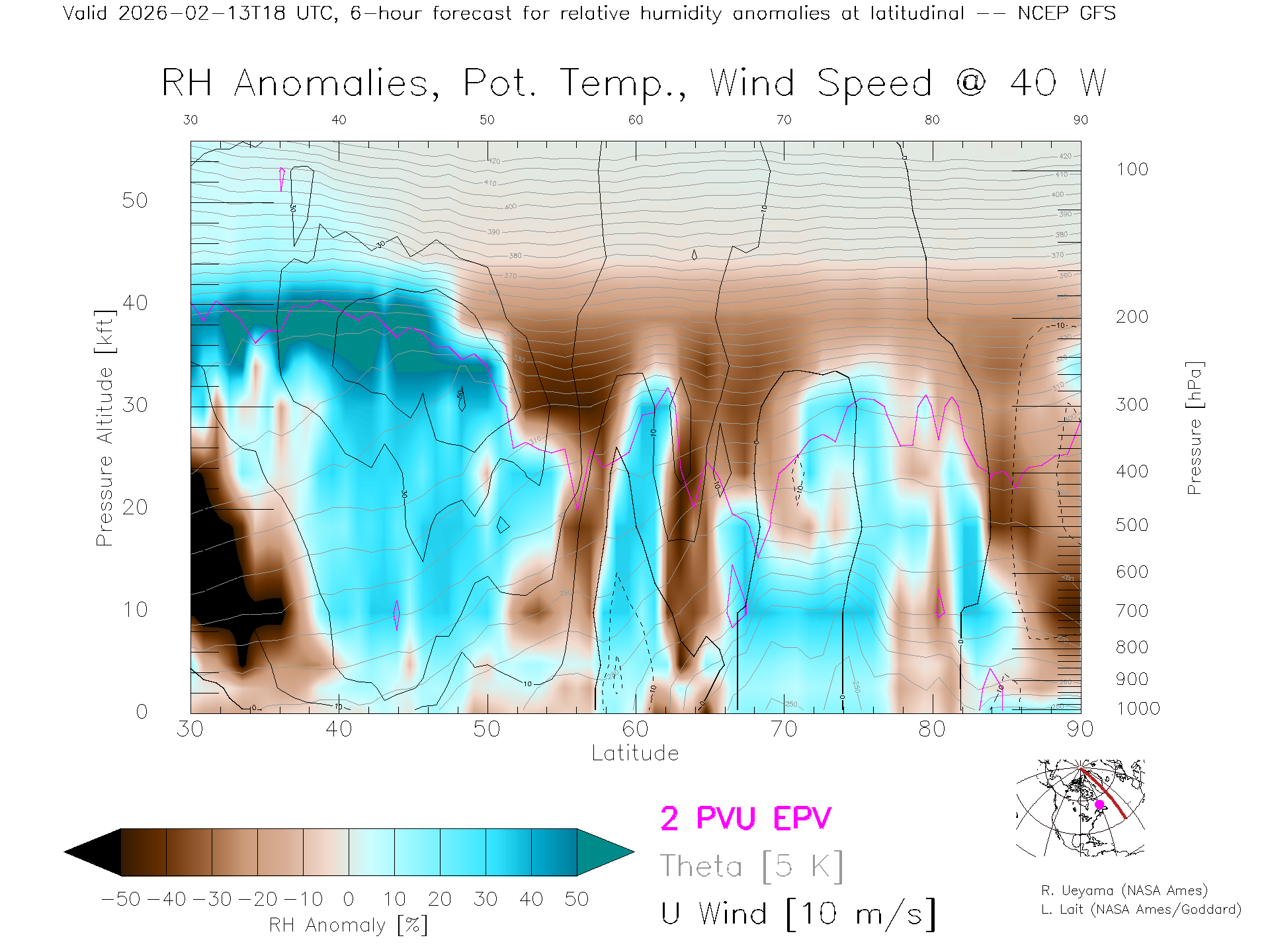 NCEP GFS Forecast Rel. Hum. X-Section (40 W)