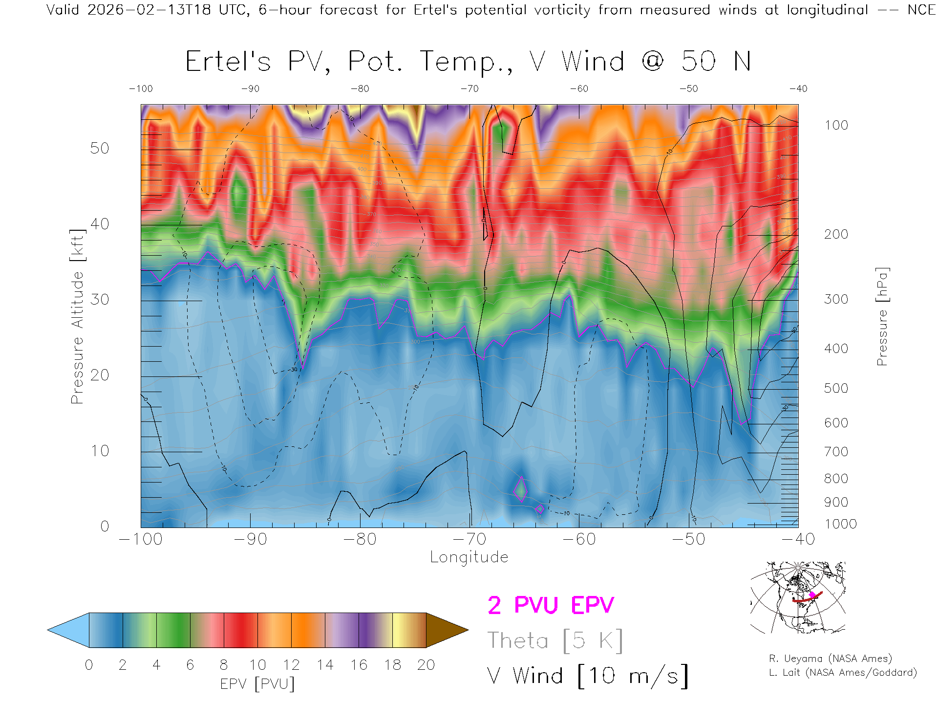 NCEP GFS Forecast PV X-Section (50 N)