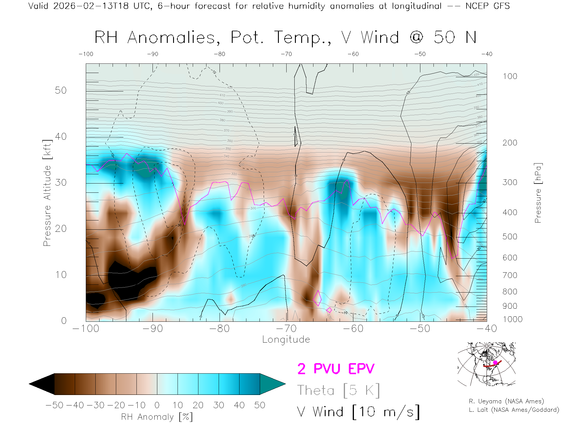 NCEP GFS Forecast Rel. Hum. X-Section (50 N)