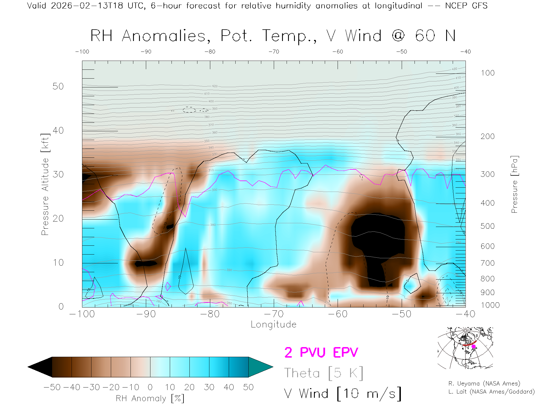 NCEP GFS Forecast Rel. Hum. X-Section (60 N)