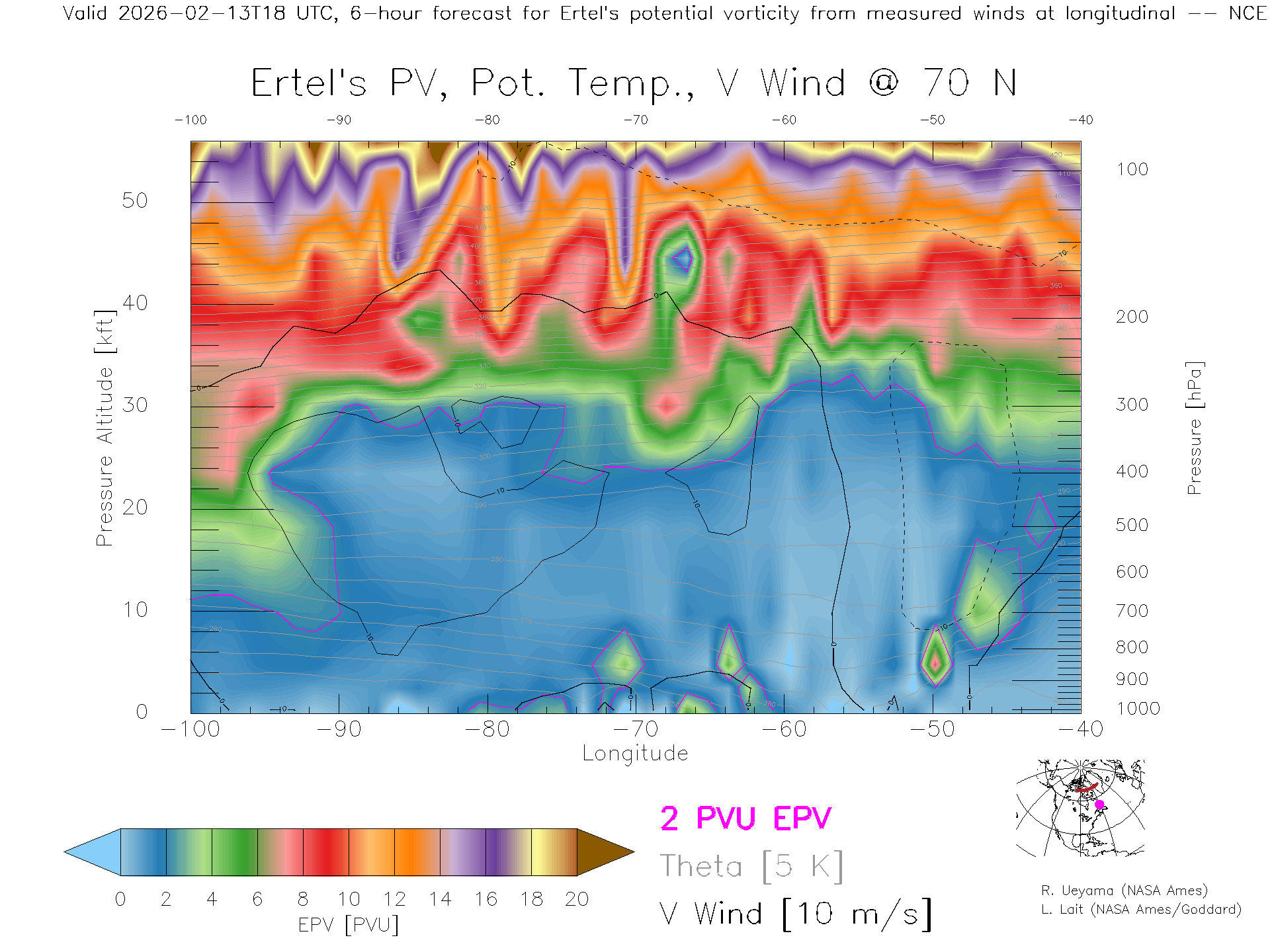 NCEP GFS Forecast PV X-Section (70 N)