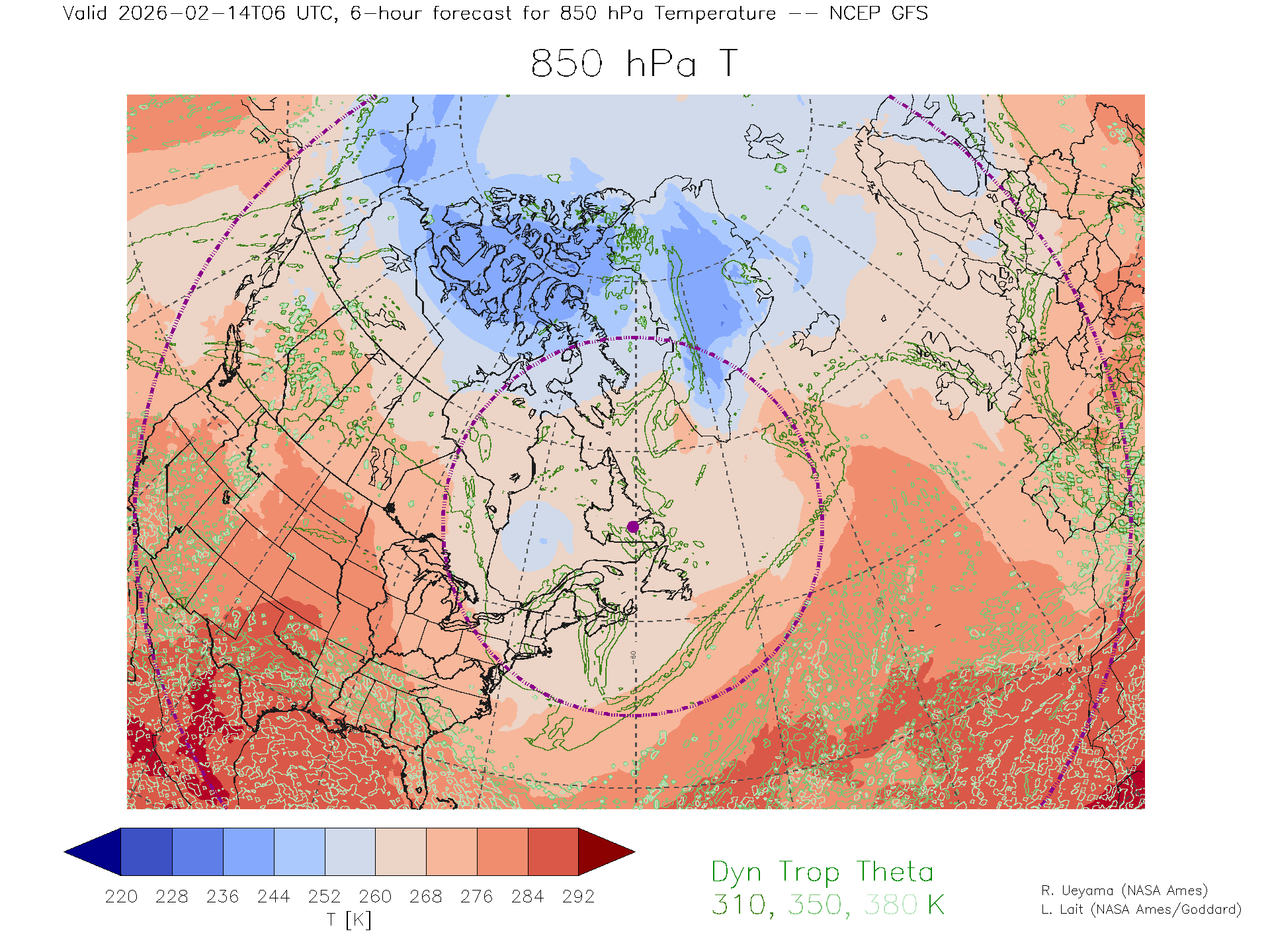 NCEP GFS Forecast 850 hPa Temp.