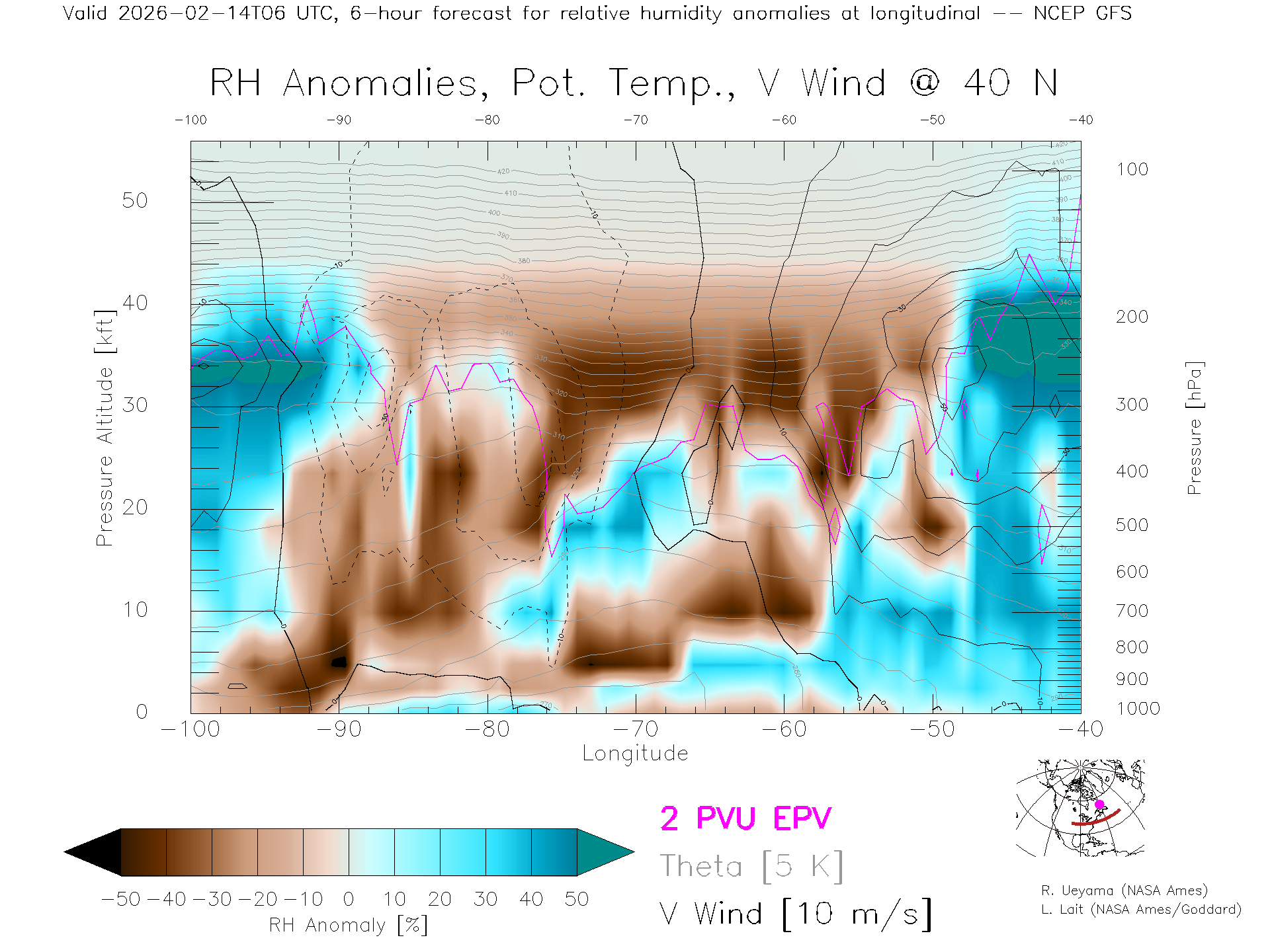 NCEP GFS Forecast Rel. Hum. X-Section (40 N)