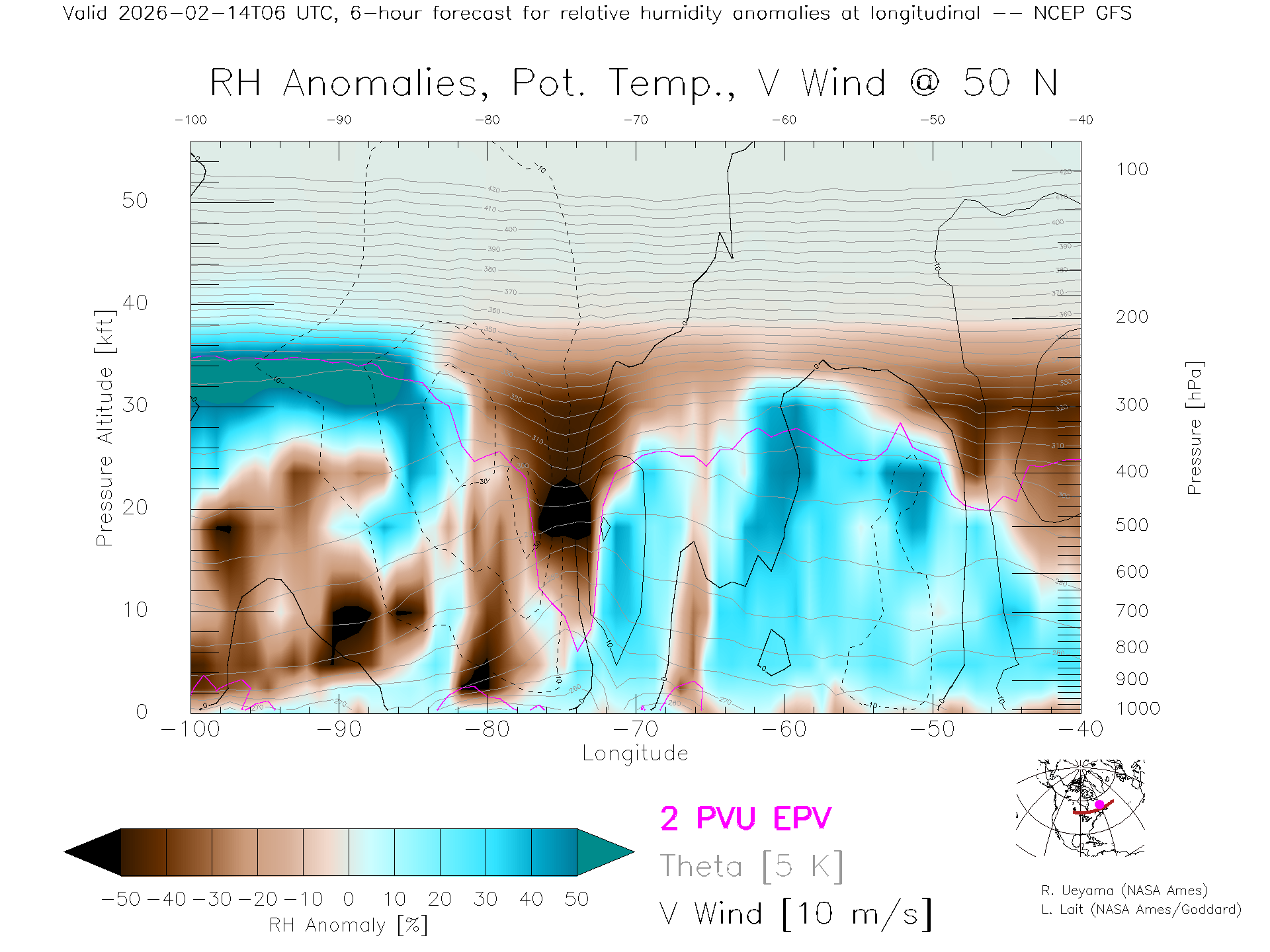 NCEP GFS Forecast Rel. Hum. X-Section (50 N)