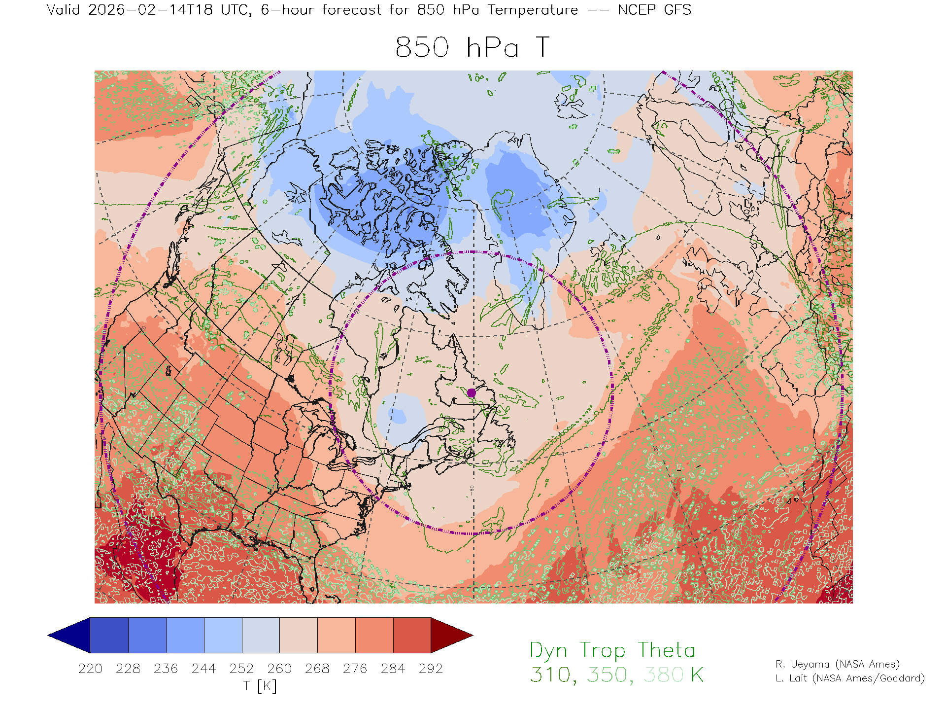 NCEP GFS Forecast 850 hPa Temp.