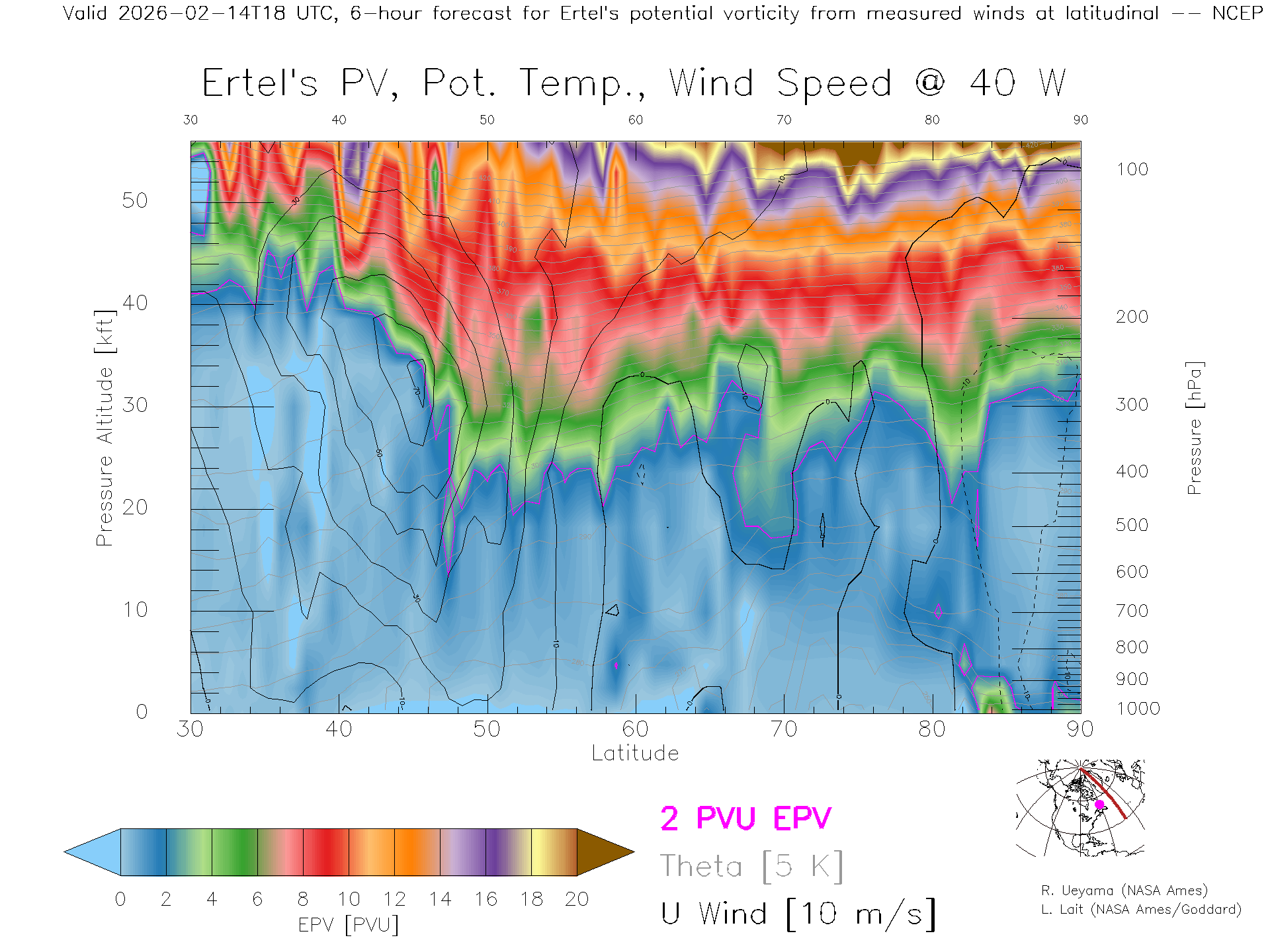 NCEP GFS Forecast PV X-Section (40 W)