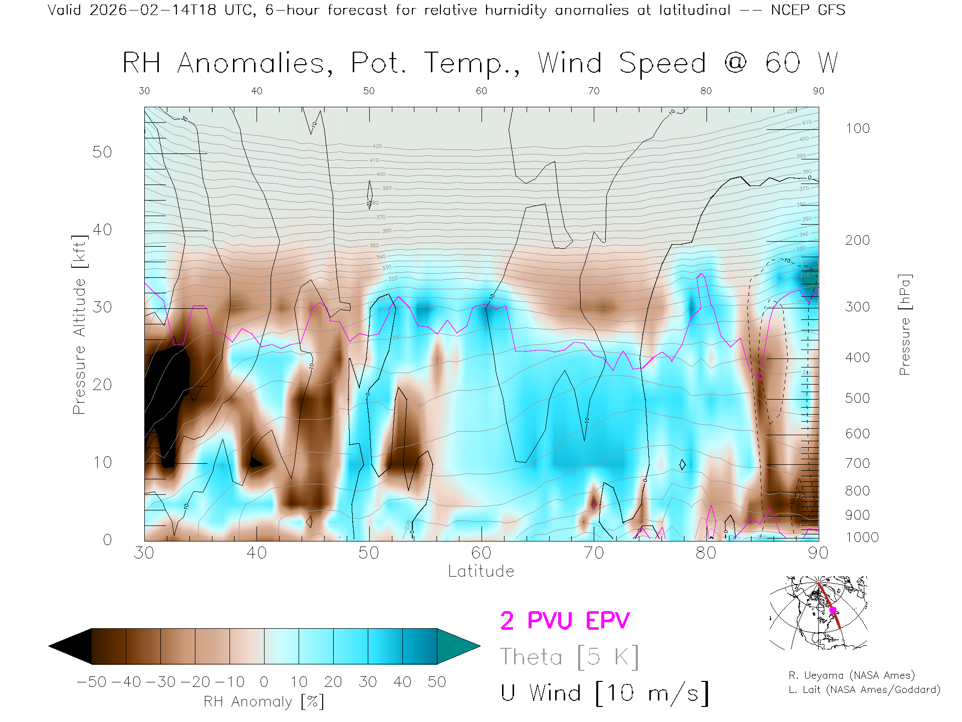 NCEP GFS Forecast Rel. Hum. X-Section (60 W)