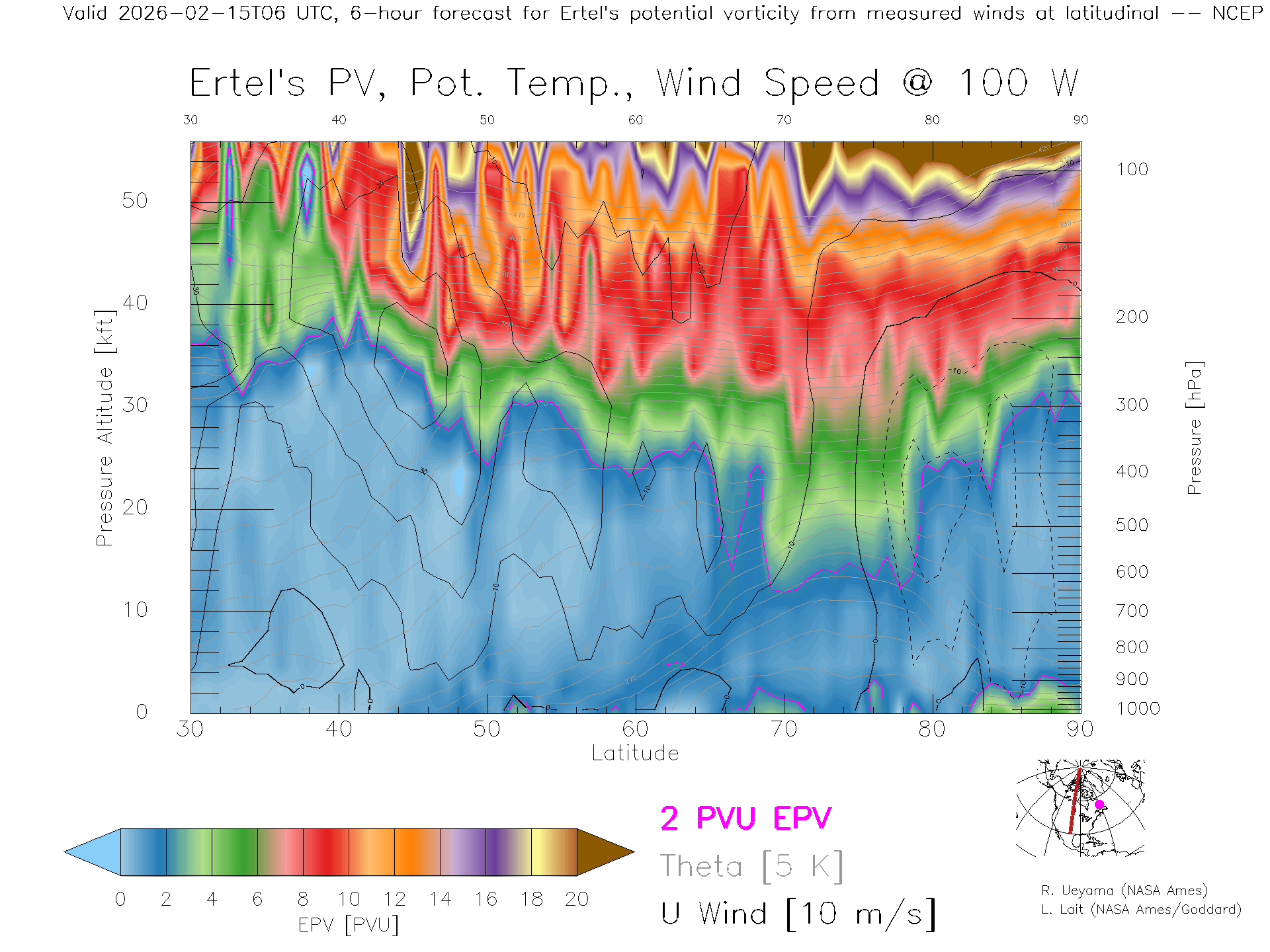 NCEP GFS Forecast PV X-Section (100 W)