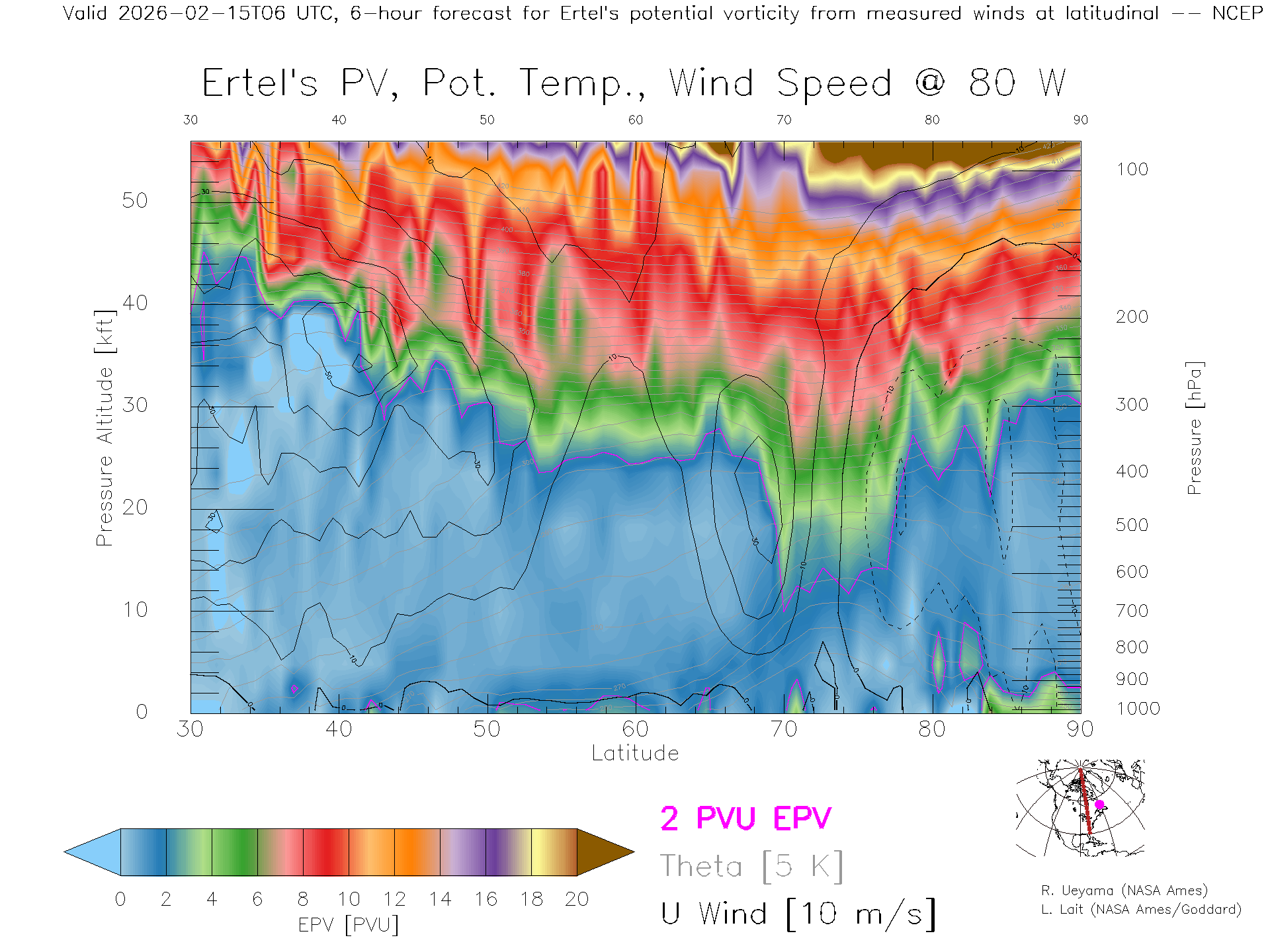 NCEP GFS Forecast PV X-Section (80 W)