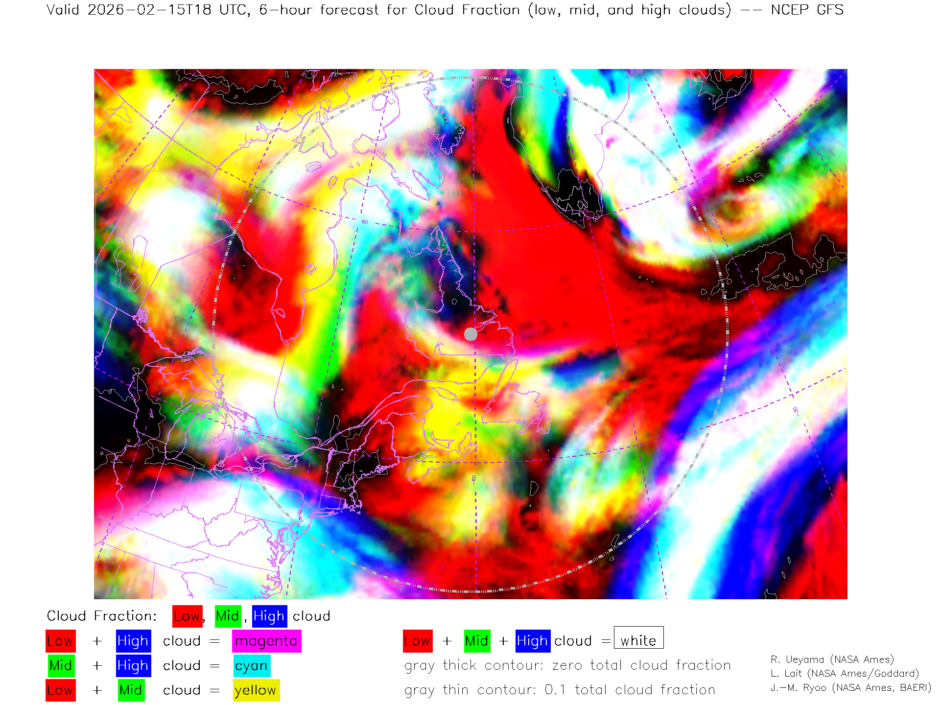 NCEP GFS Forecast Low-, Mid- and High-level Cloud Fraction