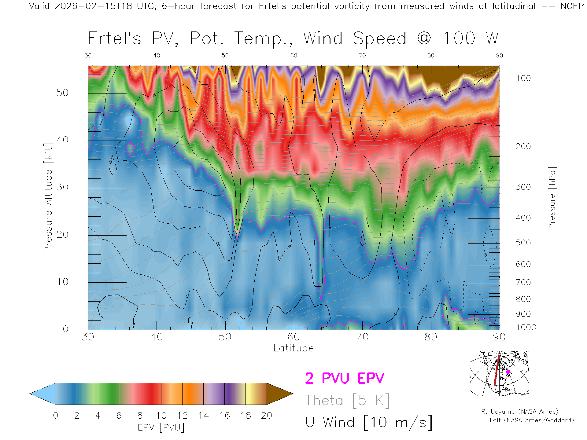 NCEP GFS Forecast PV X-Section (100 W)
