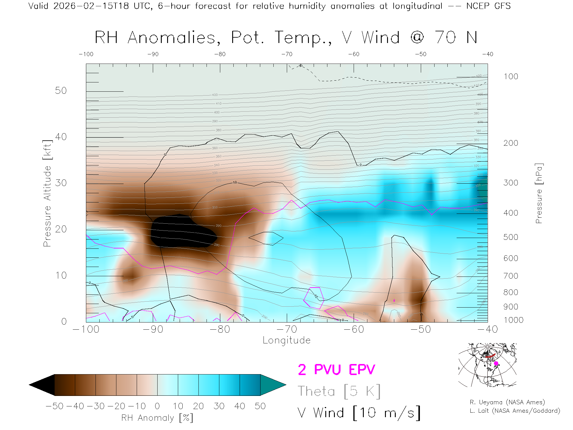 NCEP GFS Forecast Rel. Hum. X-Section (70 N)