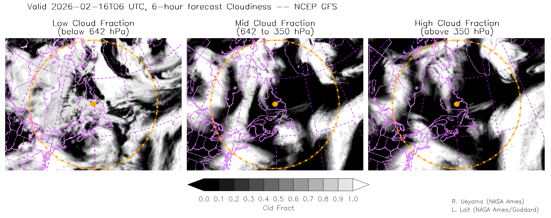 NCEP GFS Forecast Cloud Fraction (High, Mid, Low)