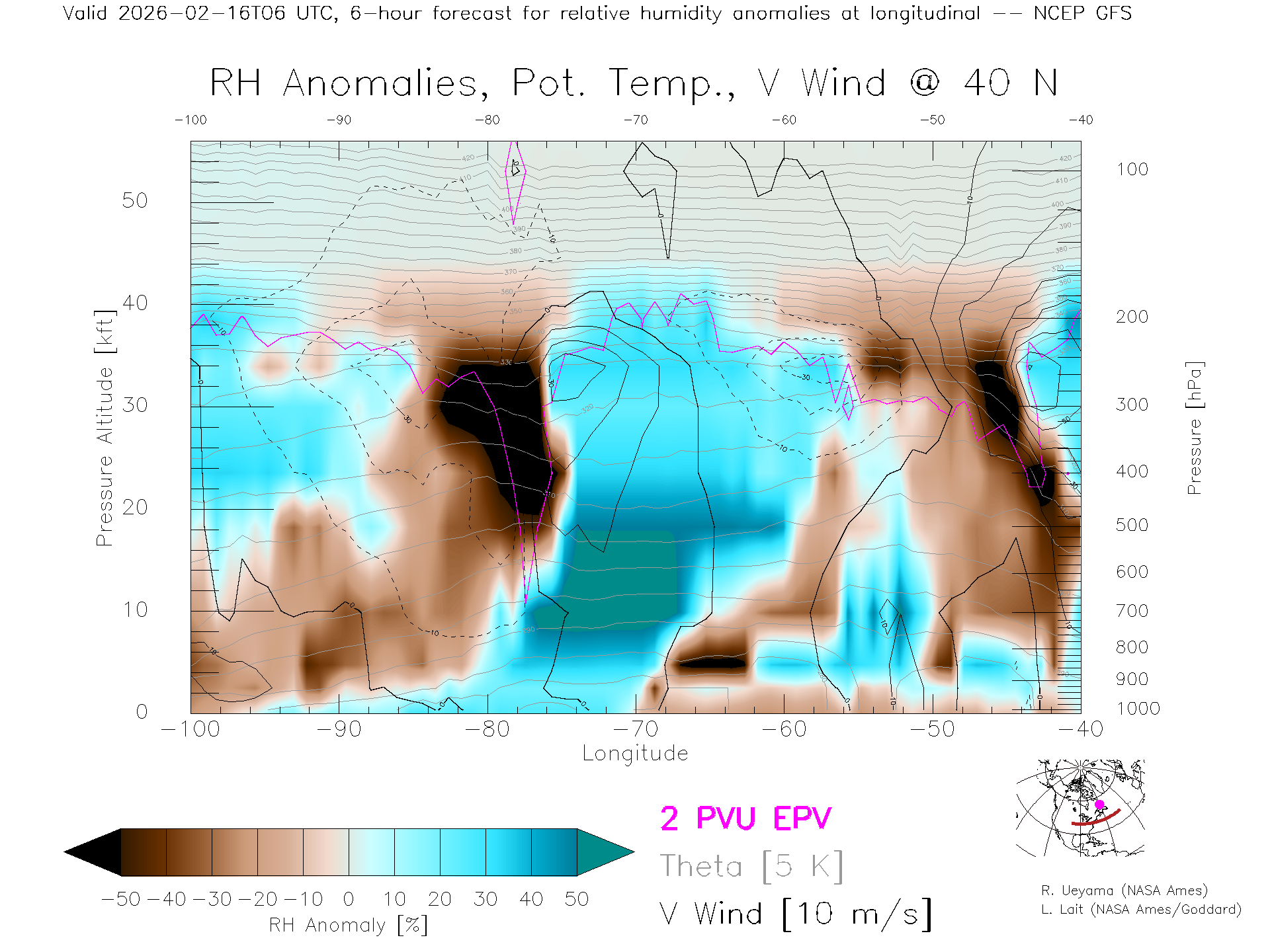 NCEP GFS Forecast Rel. Hum. X-Section (40 N)