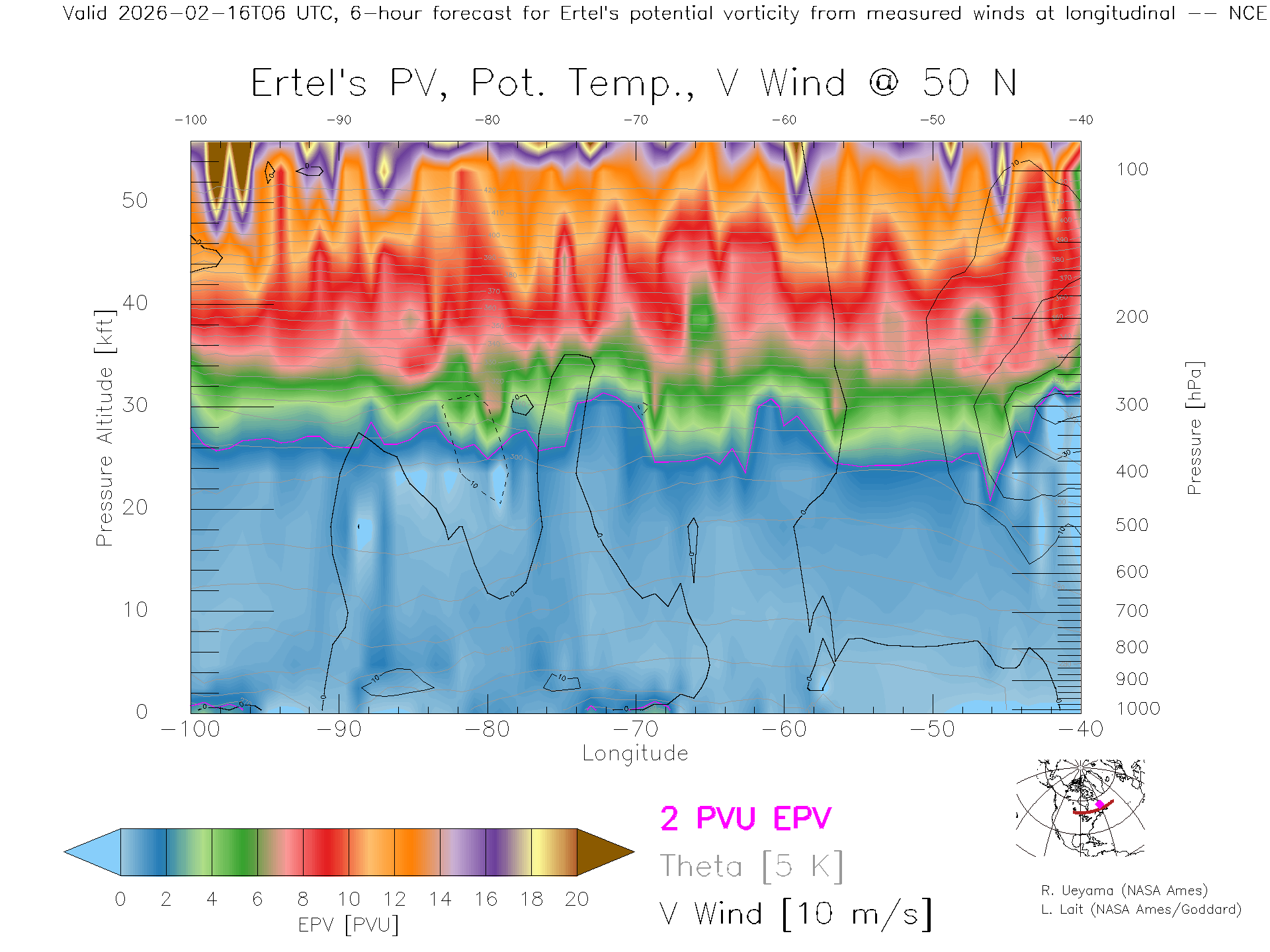 NCEP GFS Forecast PV X-Section (50 N)
