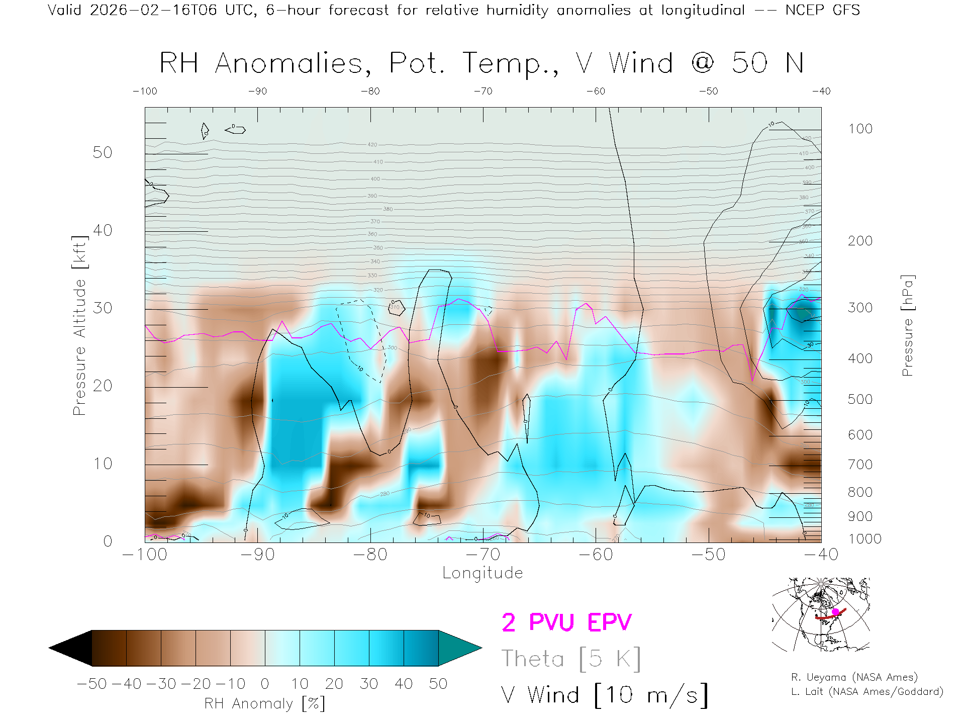 NCEP GFS Forecast Rel. Hum. X-Section (50 N)