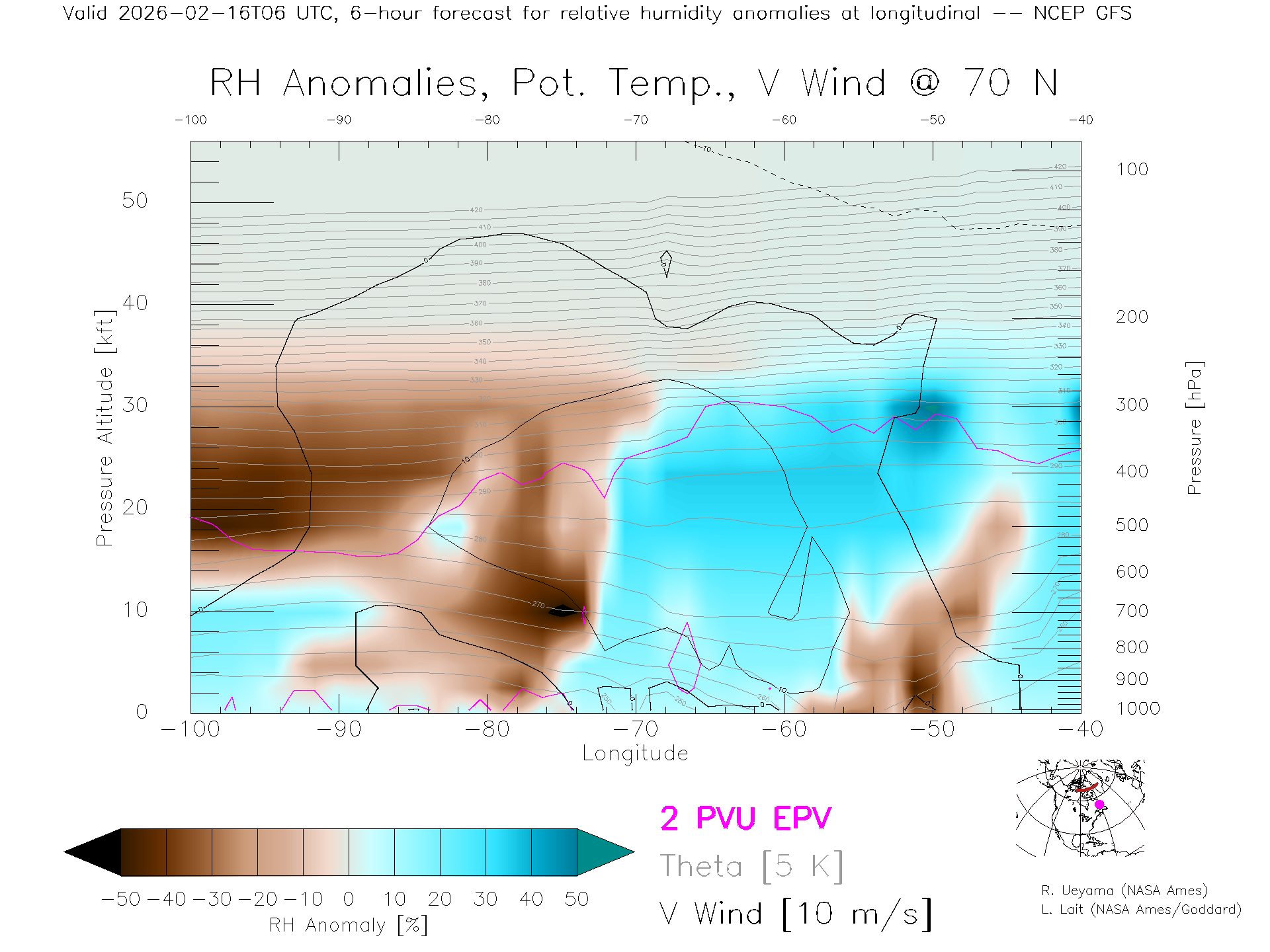 NCEP GFS Forecast Rel. Hum. X-Section (70 N)