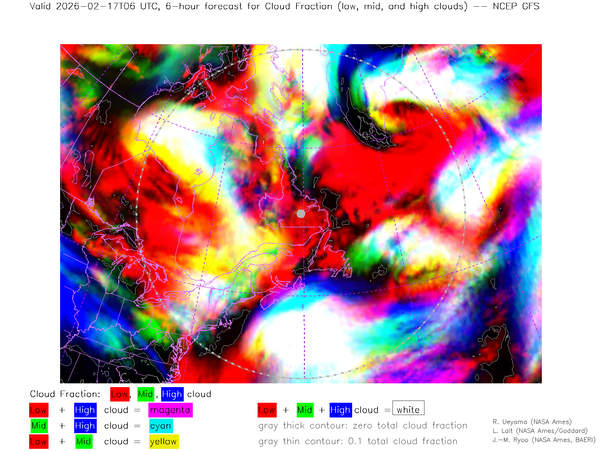 NCEP GFS Forecast Low-, Mid- and High-level Cloud Fraction