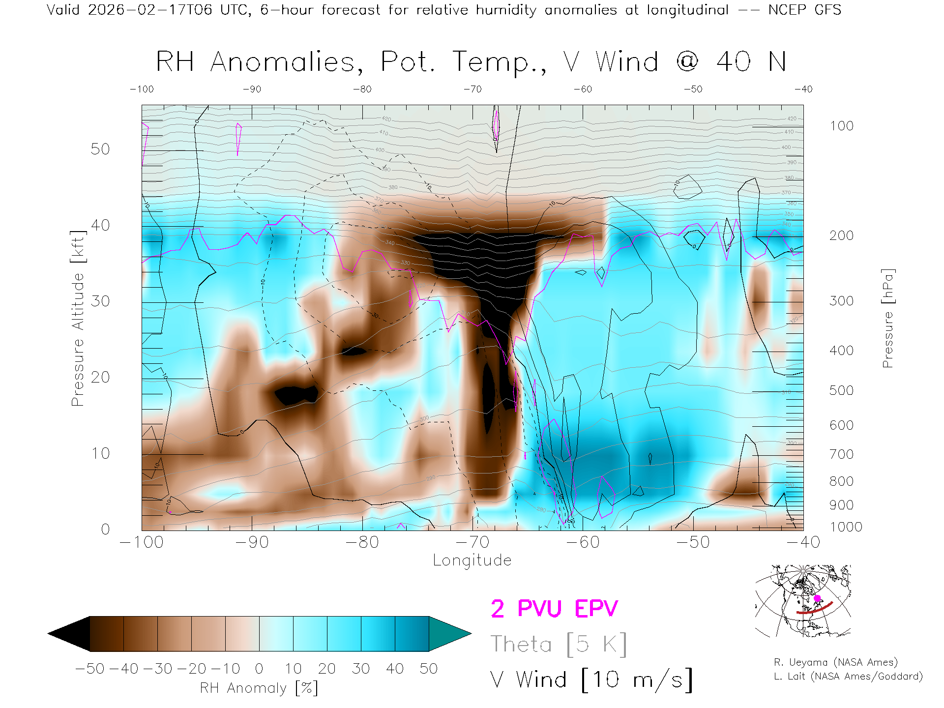NCEP GFS Forecast Rel. Hum. X-Section (40 N)