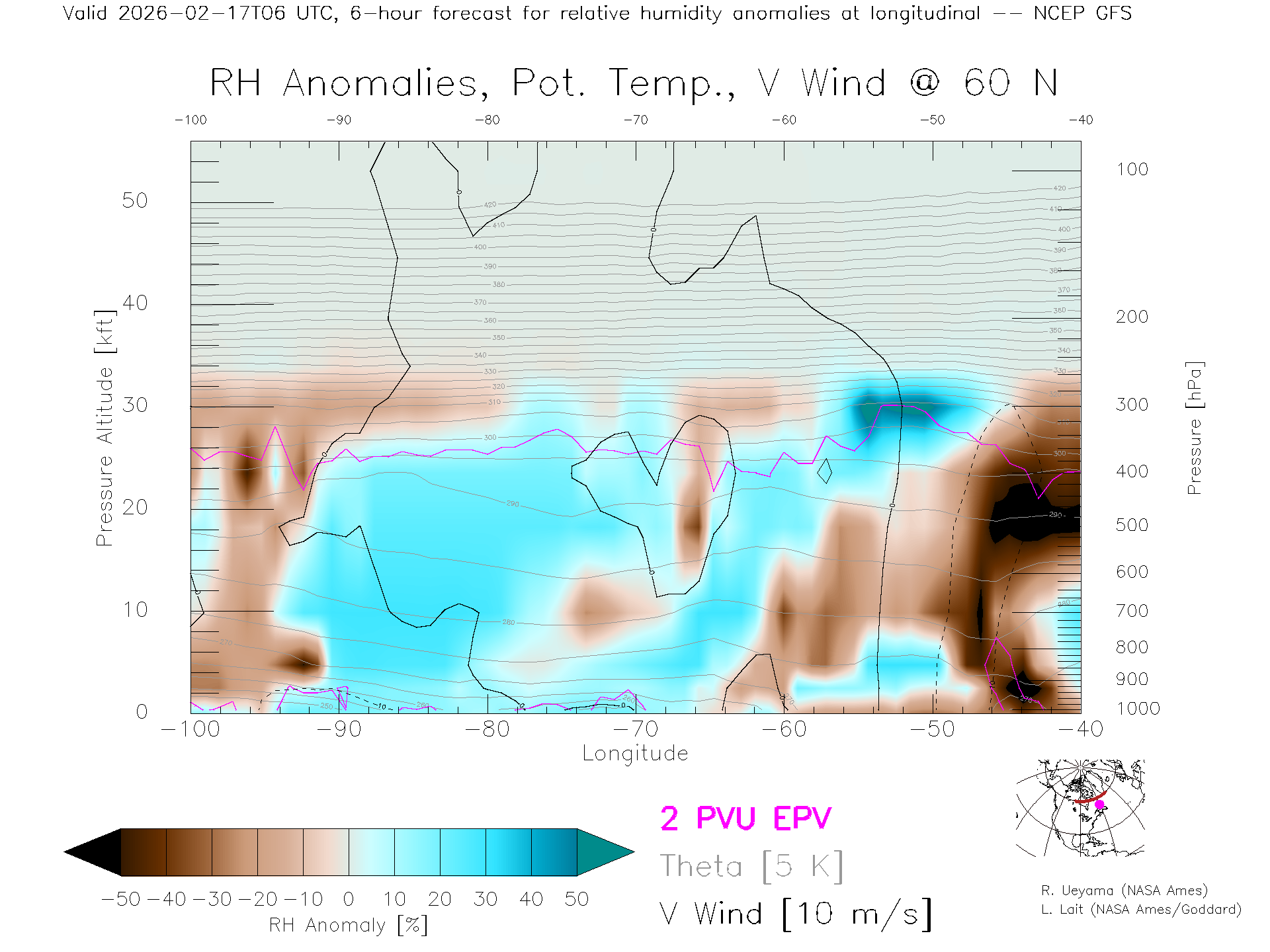 NCEP GFS Forecast Rel. Hum. X-Section (60 N)
