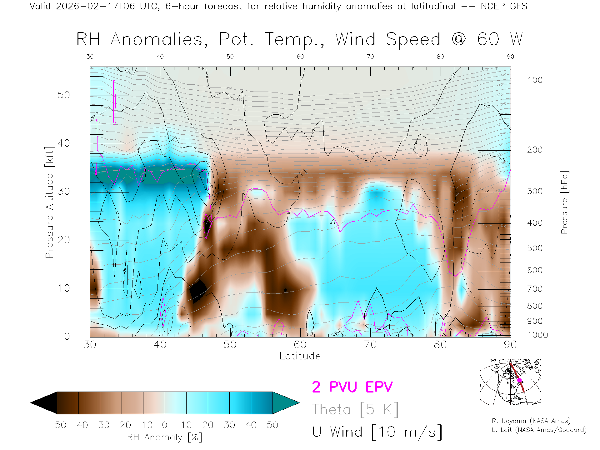 NCEP GFS Forecast Rel. Hum. X-Section (60 W)