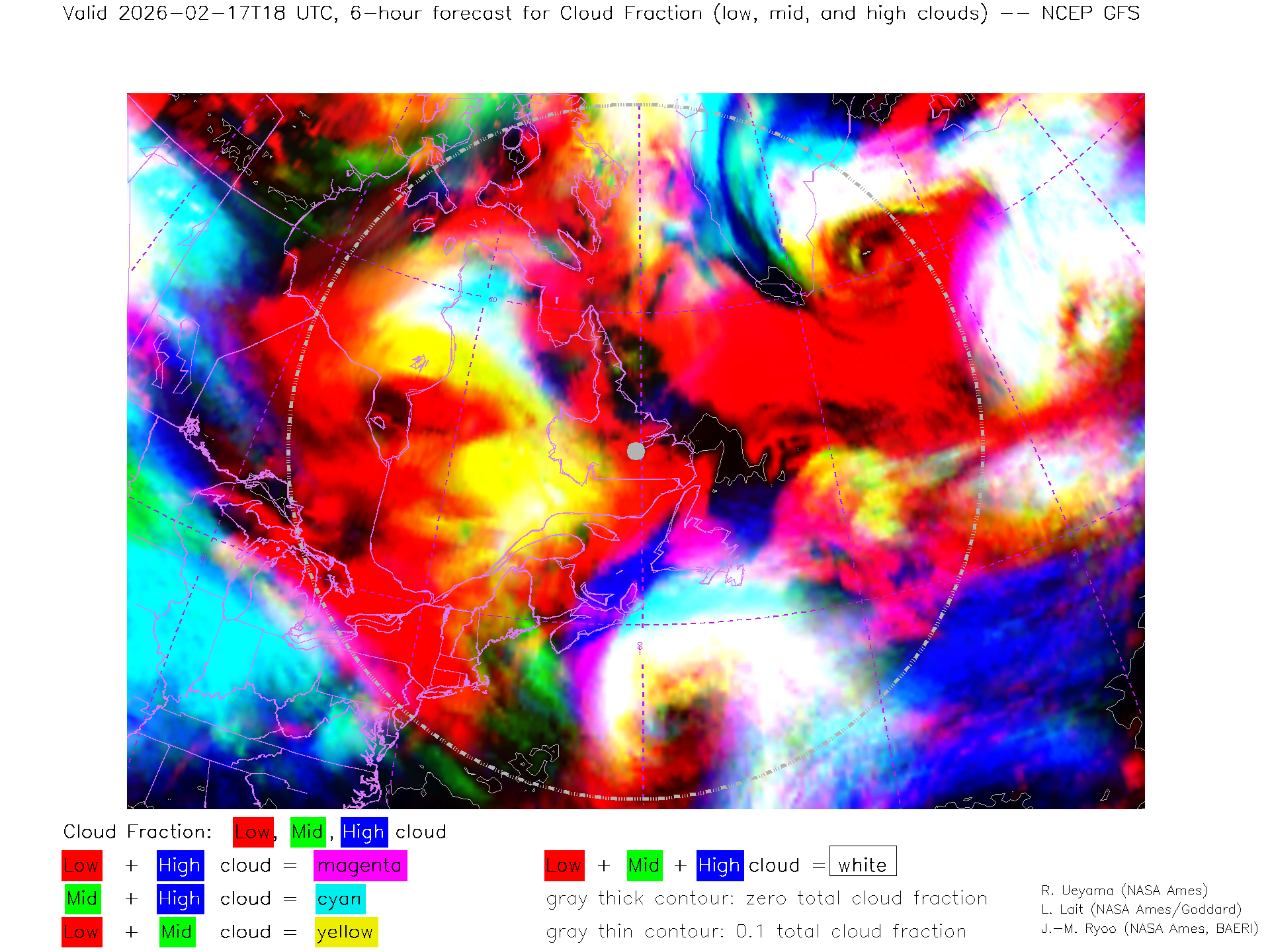 NCEP GFS Forecast Low-, Mid- and High-level Cloud Fraction