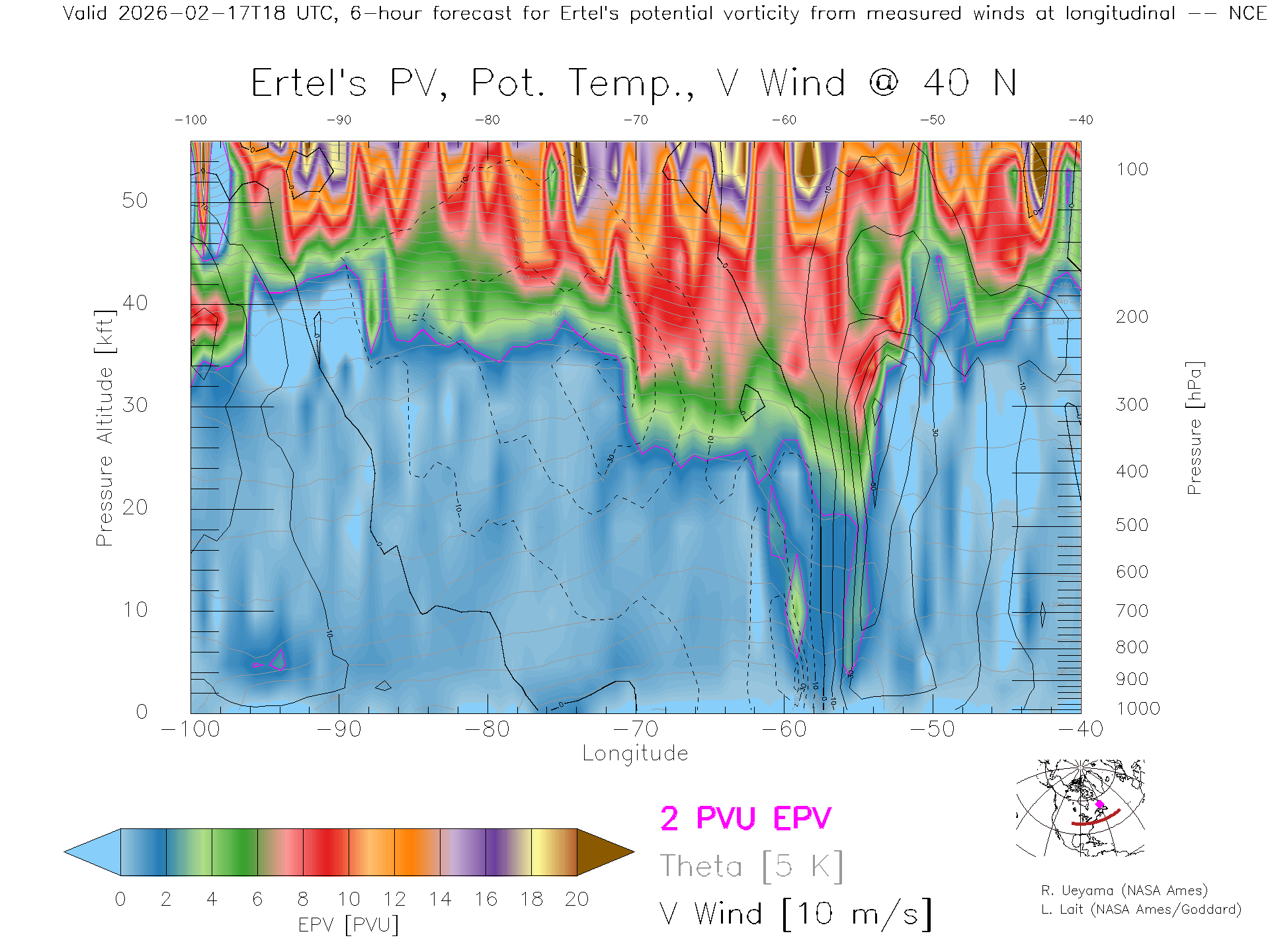 NCEP GFS Forecast PV X-Section (40 N)