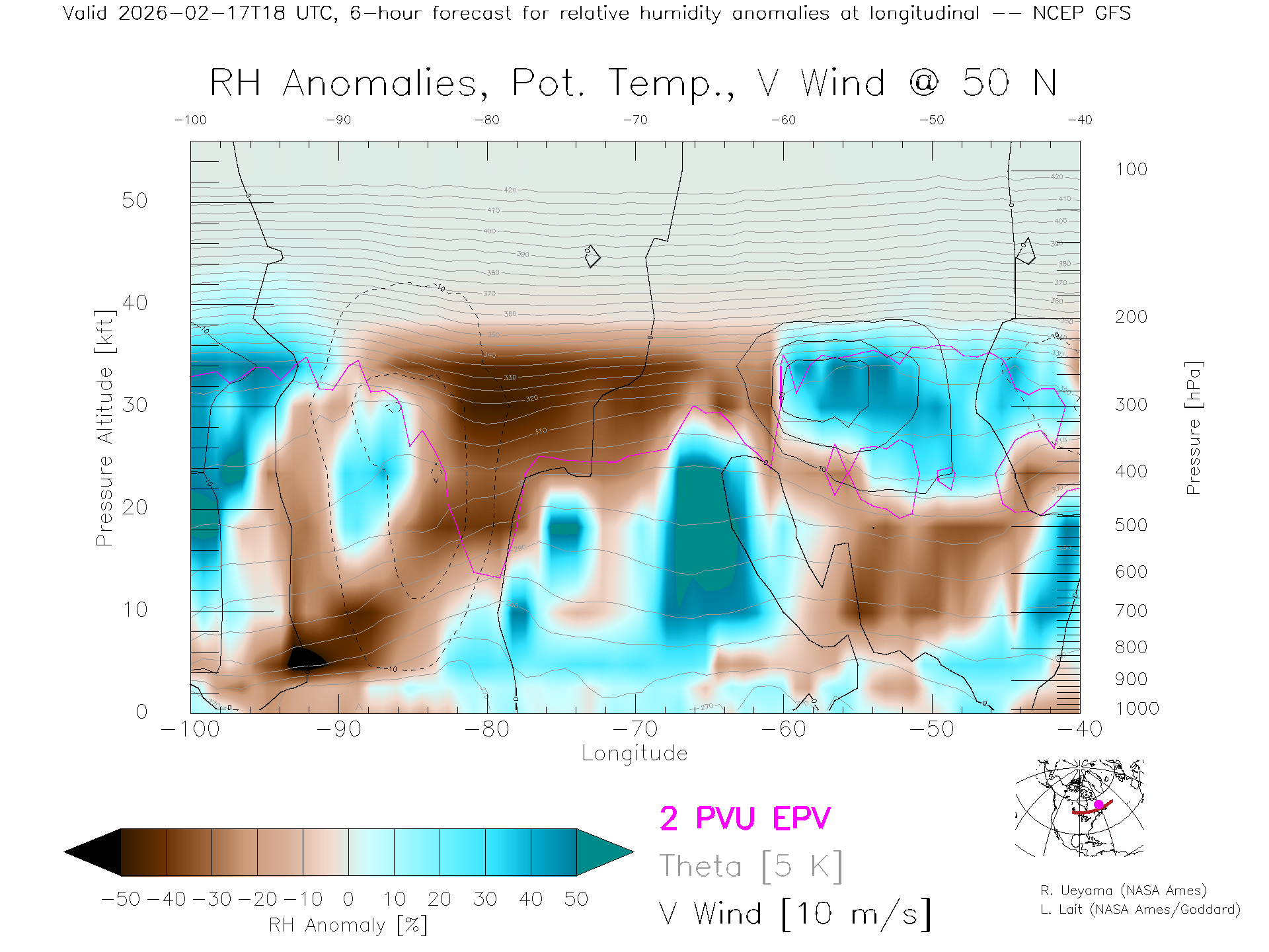 NCEP GFS Forecast Rel. Hum. X-Section (50 N)