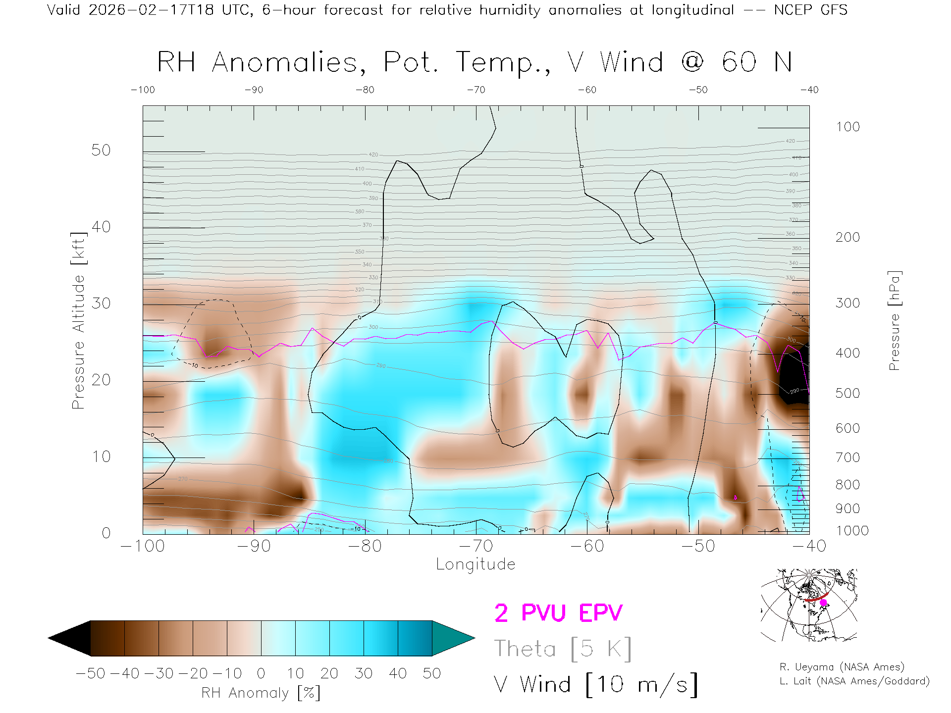 NCEP GFS Forecast Rel. Hum. X-Section (60 N)