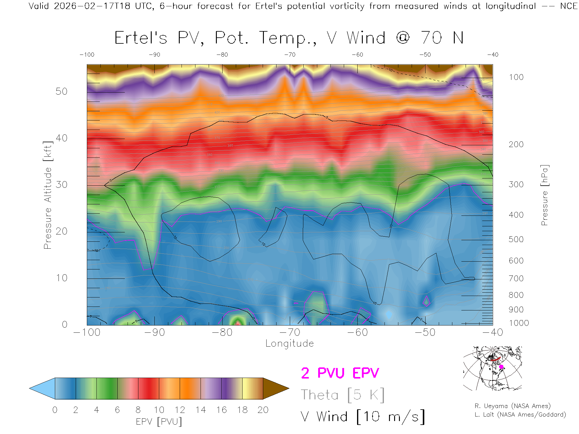 NCEP GFS Forecast PV X-Section (70 N)