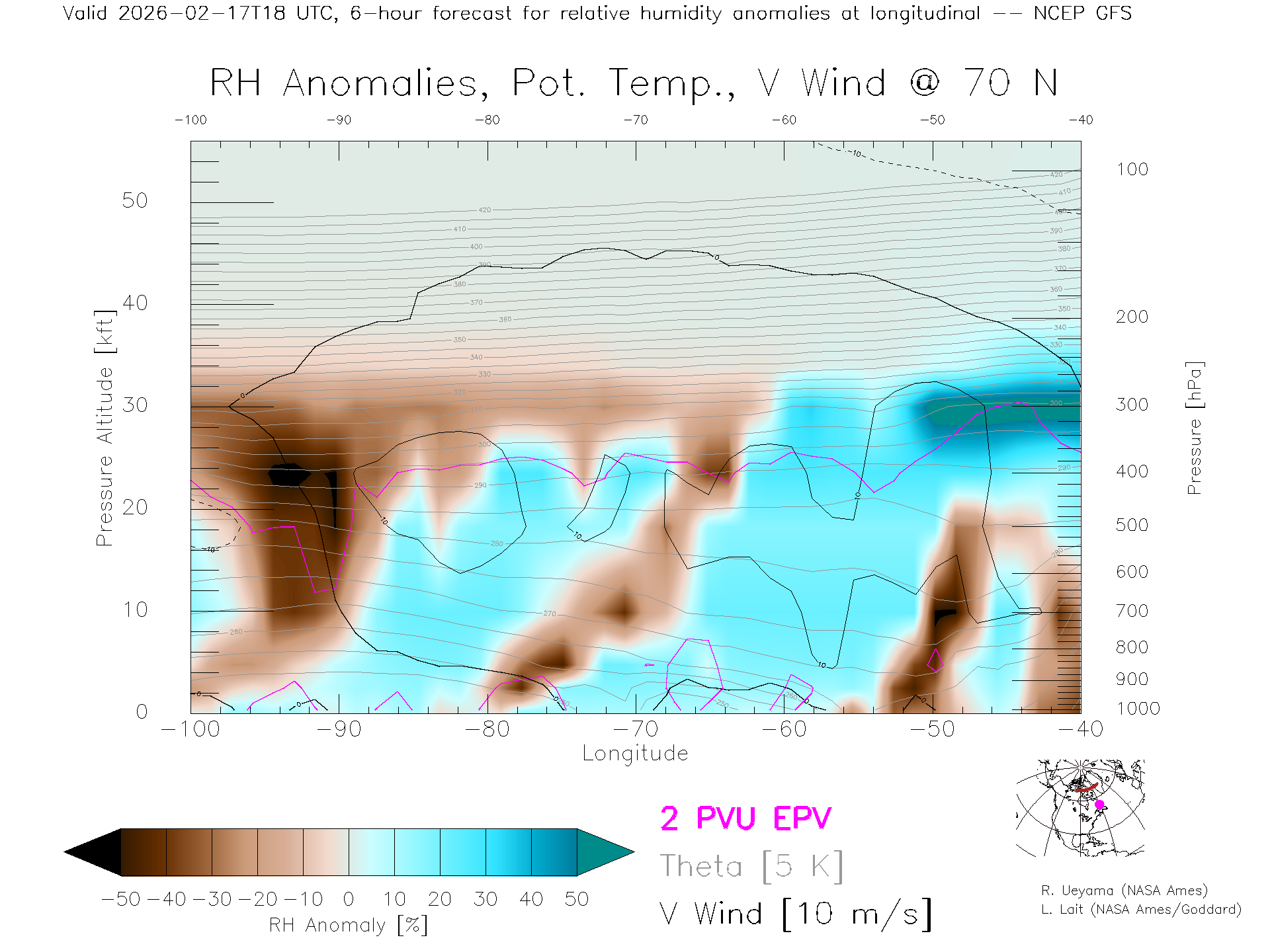 NCEP GFS Forecast Rel. Hum. X-Section (70 N)