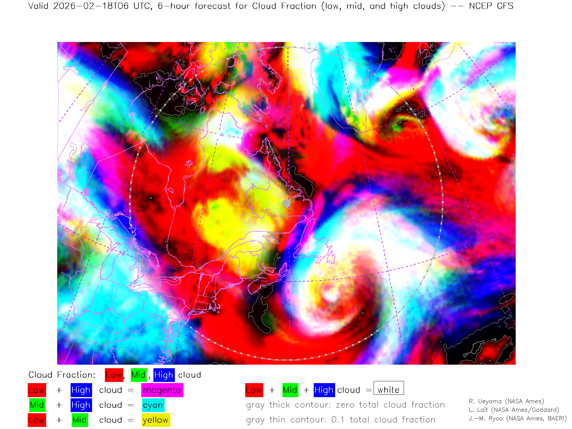 NCEP GFS Forecast Low-, Mid- and High-level Cloud Fraction