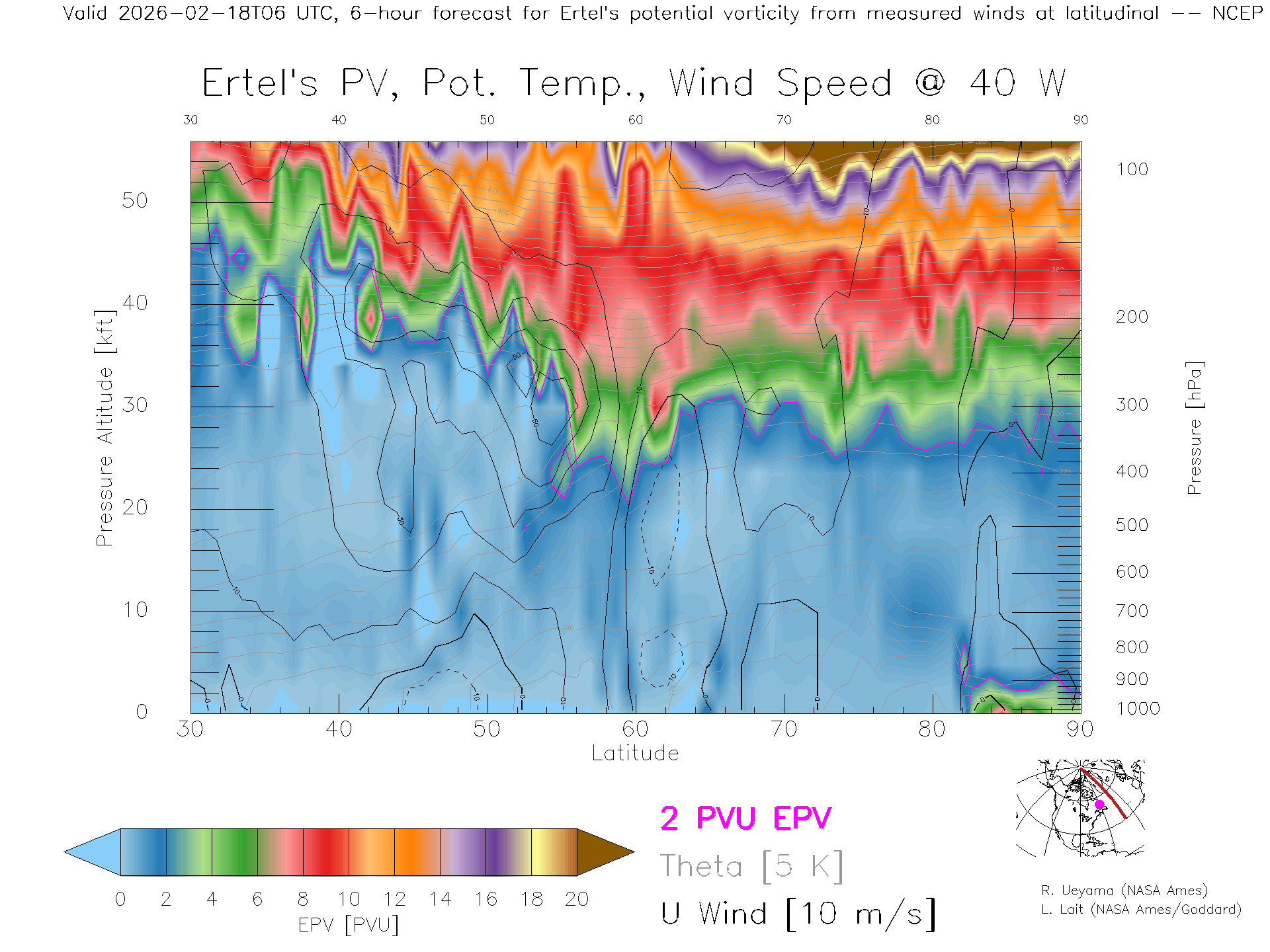 NCEP GFS Forecast PV X-Section (40 W)