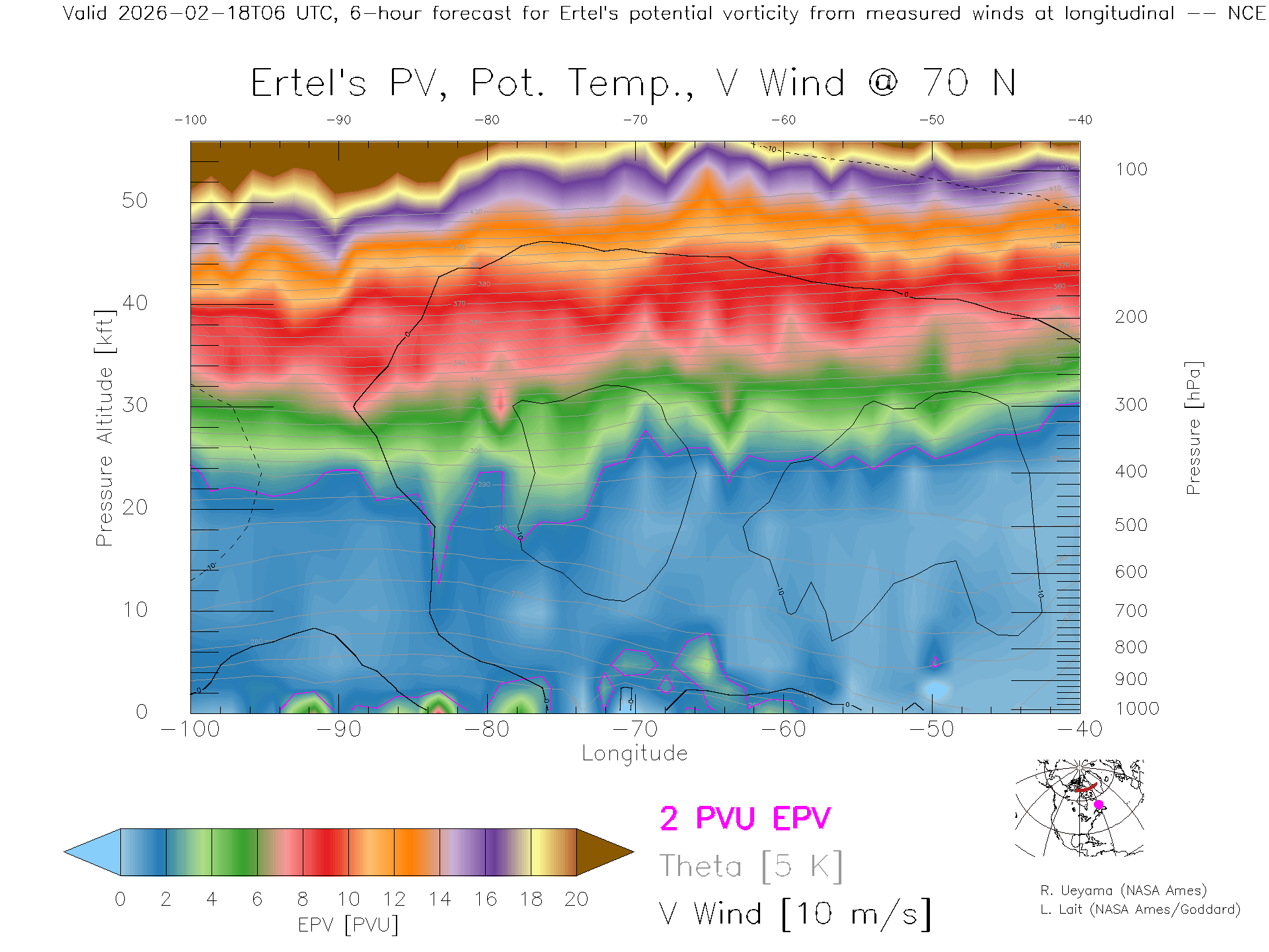 NCEP GFS Forecast PV X-Section (70 N)