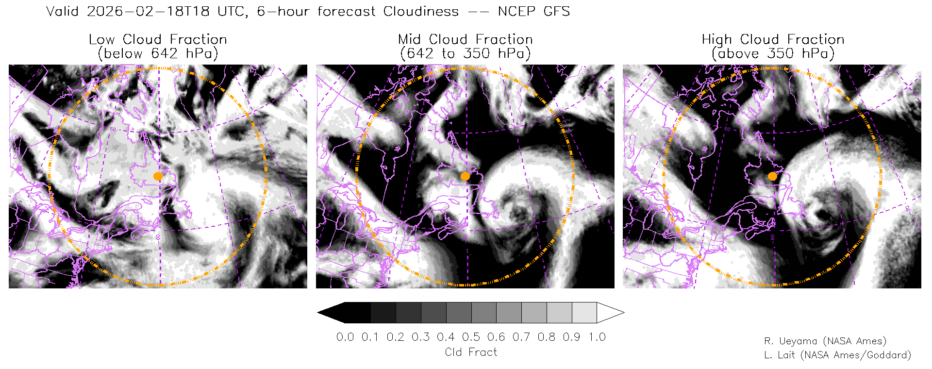 NCEP GFS Forecast Cloud Fraction (High, Mid, Low)