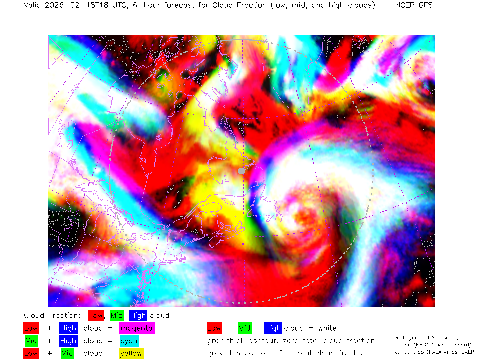 NCEP GFS Forecast Low-, Mid- and High-level Cloud Fraction