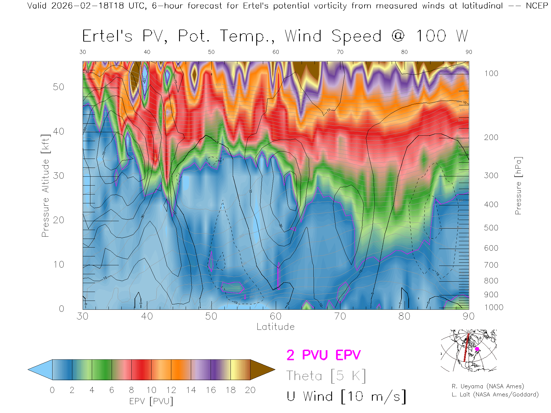 NCEP GFS Forecast PV X-Section (100 W)