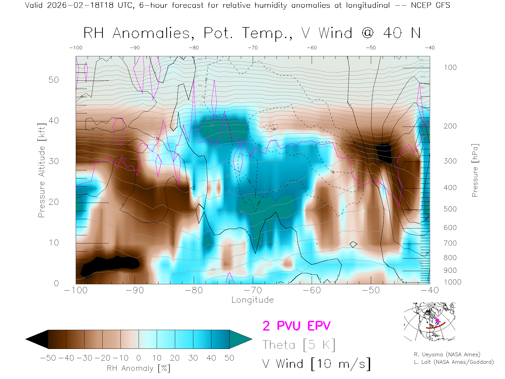 NCEP GFS Forecast Rel. Hum. X-Section (40 N)