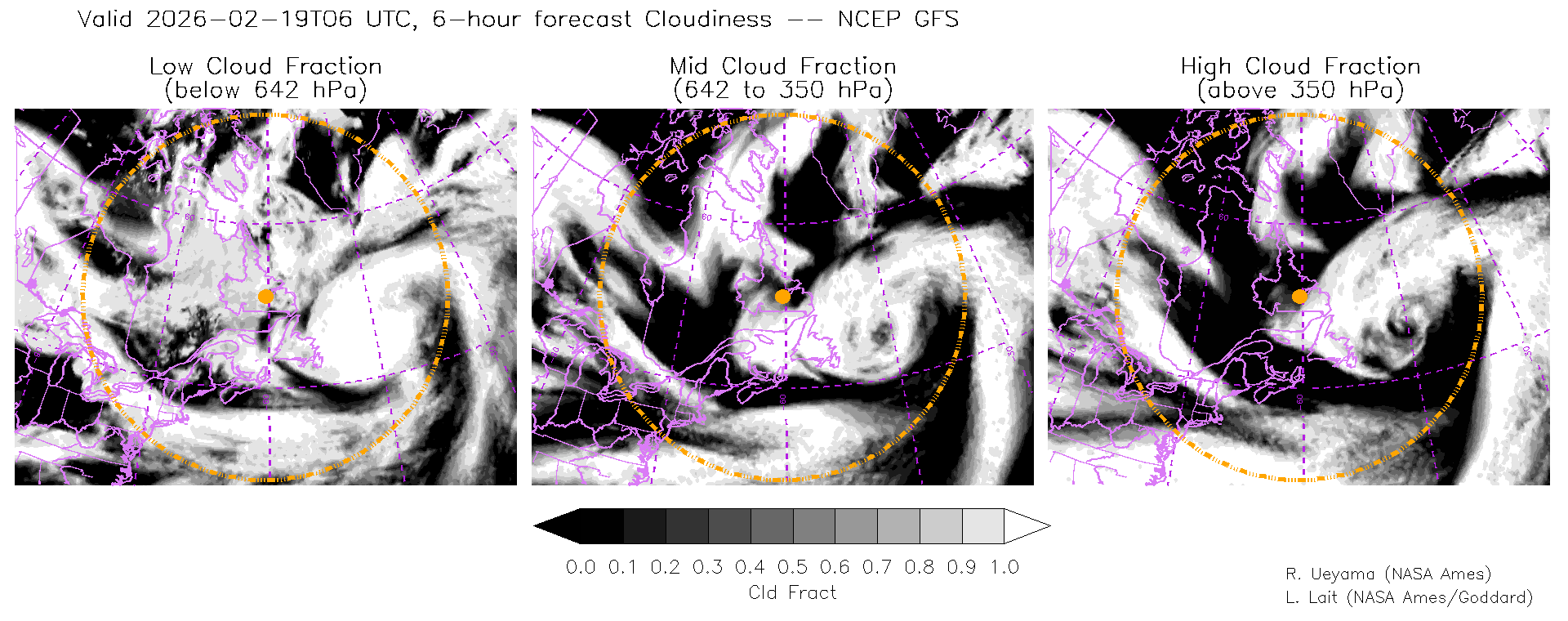 NCEP GFS Forecast Cloud Fraction (High, Mid, Low)