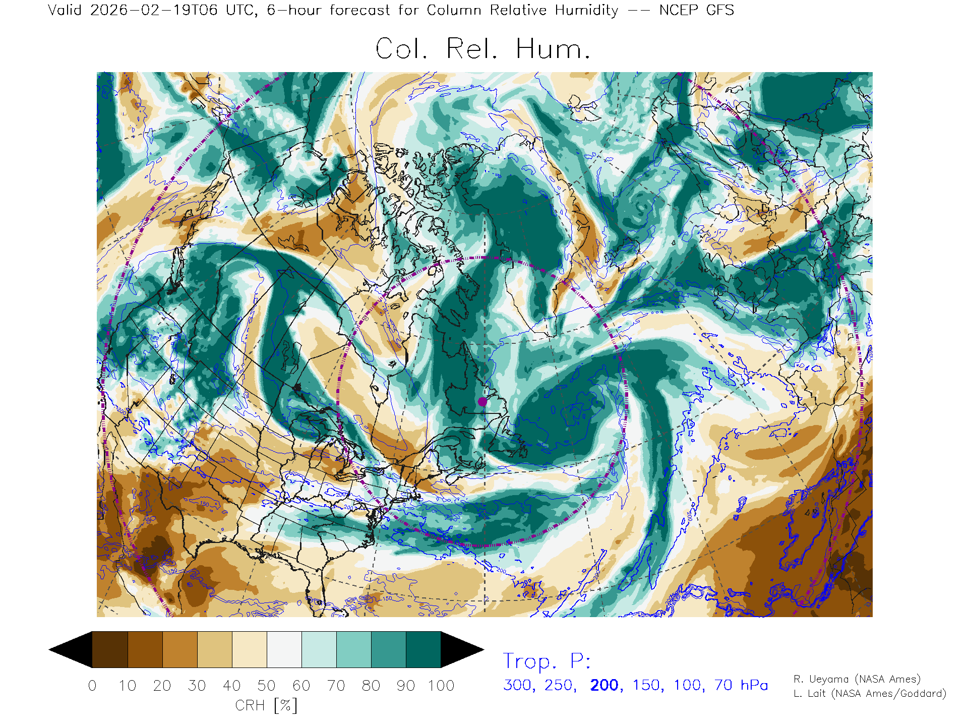 NCEP GFS Forecast Column Rel. Humidity