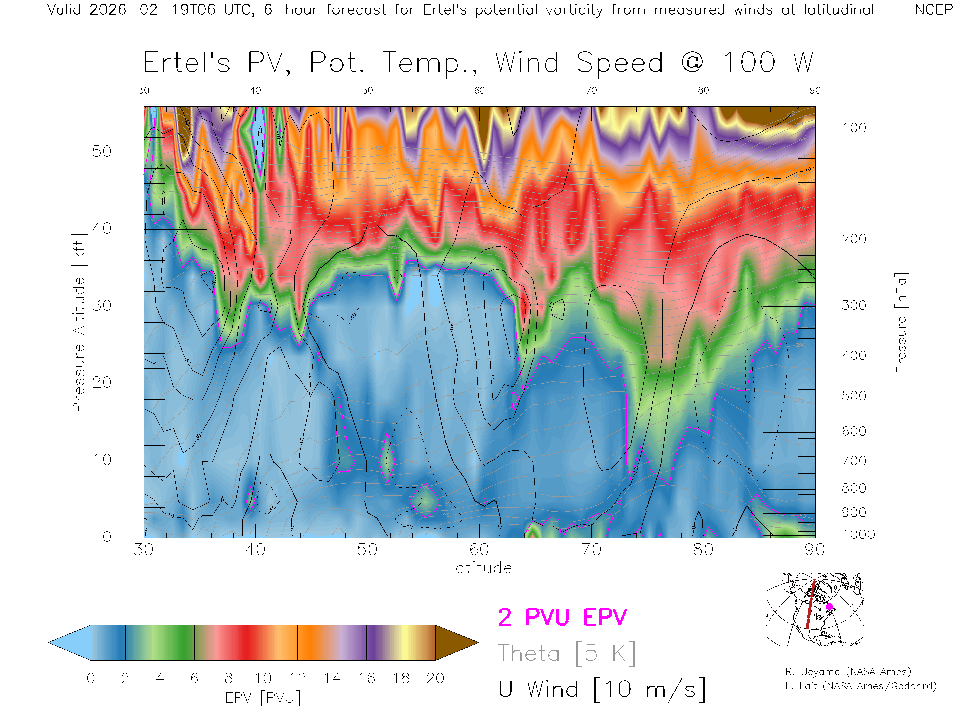 NCEP GFS Forecast PV X-Section (100 W)
